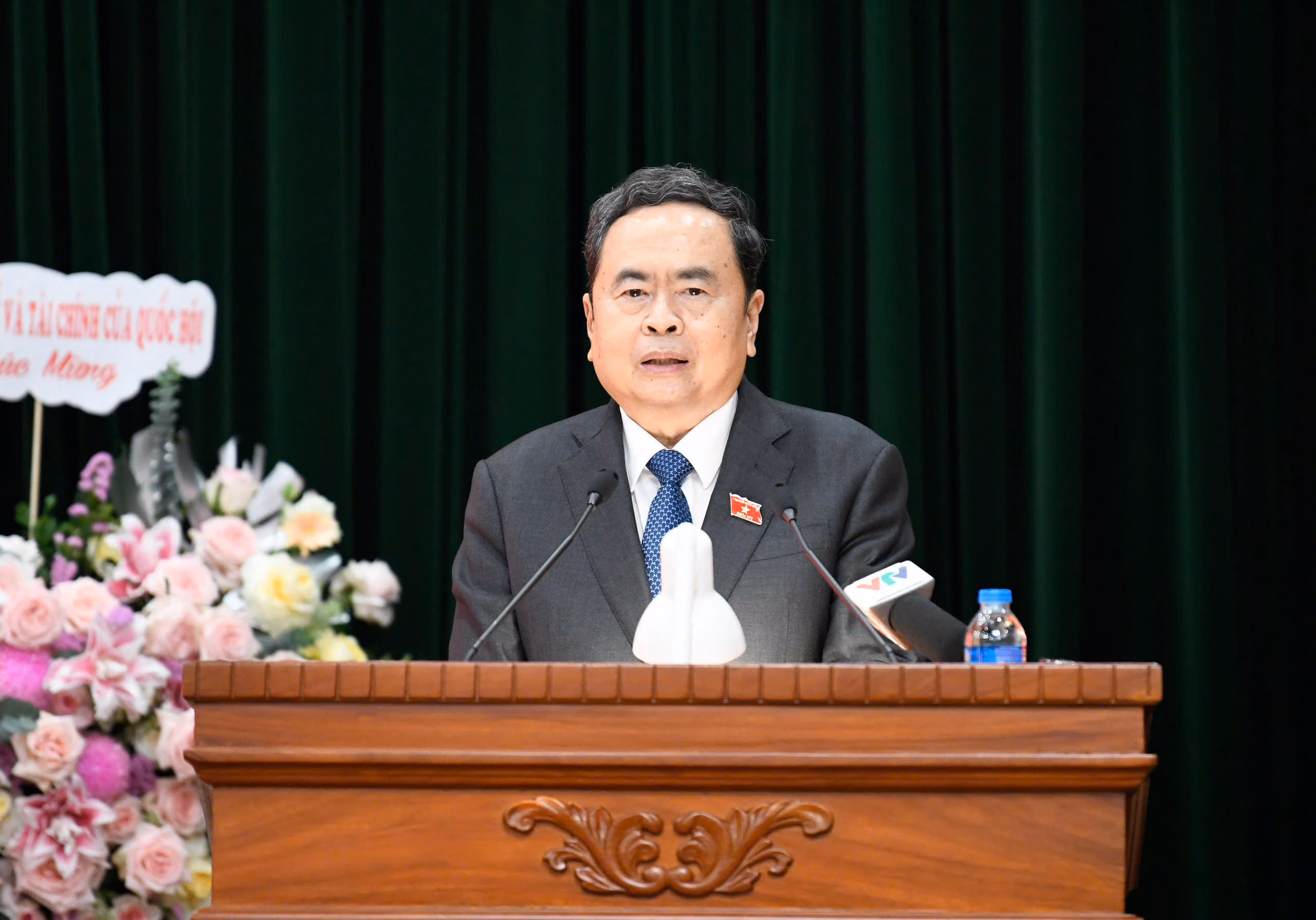 Thay mặt lãnh đạo Quốc hội, Chủ tịch Quốc hội Trần Thanh Mẫn đã trao Nghị quyết của Quốc hội về công tác cán bộ, đồng thời tặng hoa cho ông Nguyễn Hữu Nghĩa.