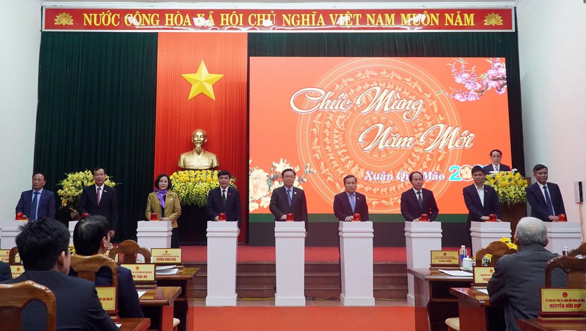 Trong chuyến thăm và làm việc tại Quảng Bình, Chủ tịch Quốc hội Vương Đình Huệ và đoàn công tác Trung ương đã bấm nút khởi công trực tuyến 3 công trình trọng điểm tại tỉnh này.
