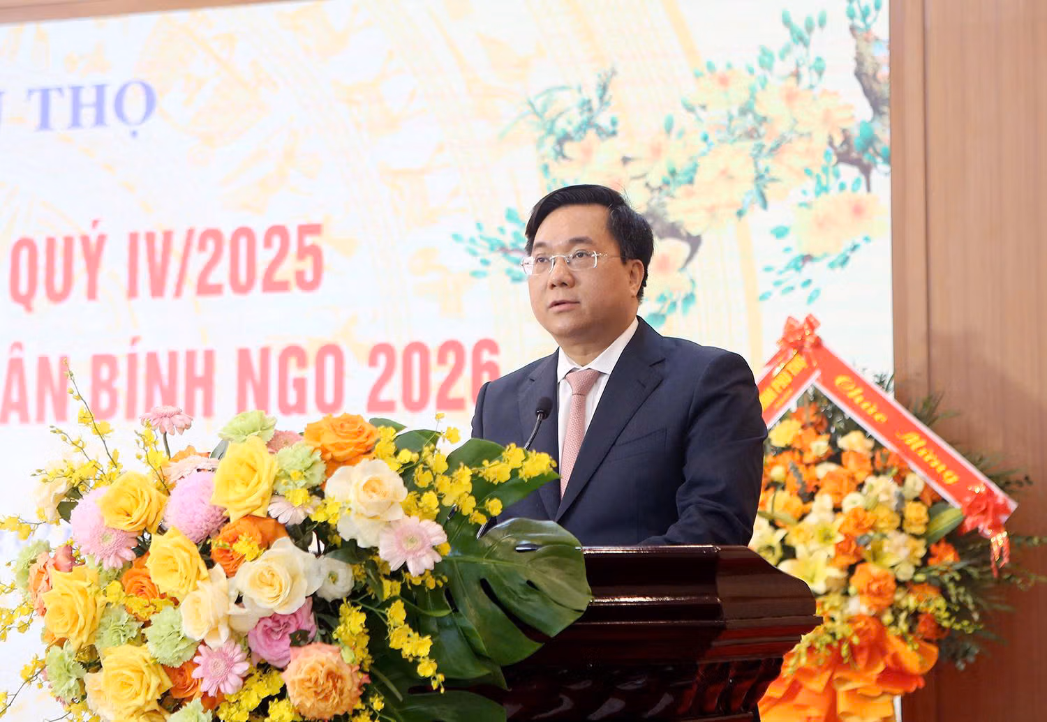 Báo chí đồng hành cùng Đất Tổ cho một năm vượt đích nhiều chỉ số kinh tế - xã hội trong thách thức và cơ hội đan xen. Ông Trần Duy Đông - Chủ tịch UBND tỉnh Phú Thọ, nói lời cảm ơn các nhà báo, phóng viên đã góp sức trên chặng đường khó khăn của tỉnh nhà năm qua tại buổi gặp gỡ báo chí đầu xuân 2026.