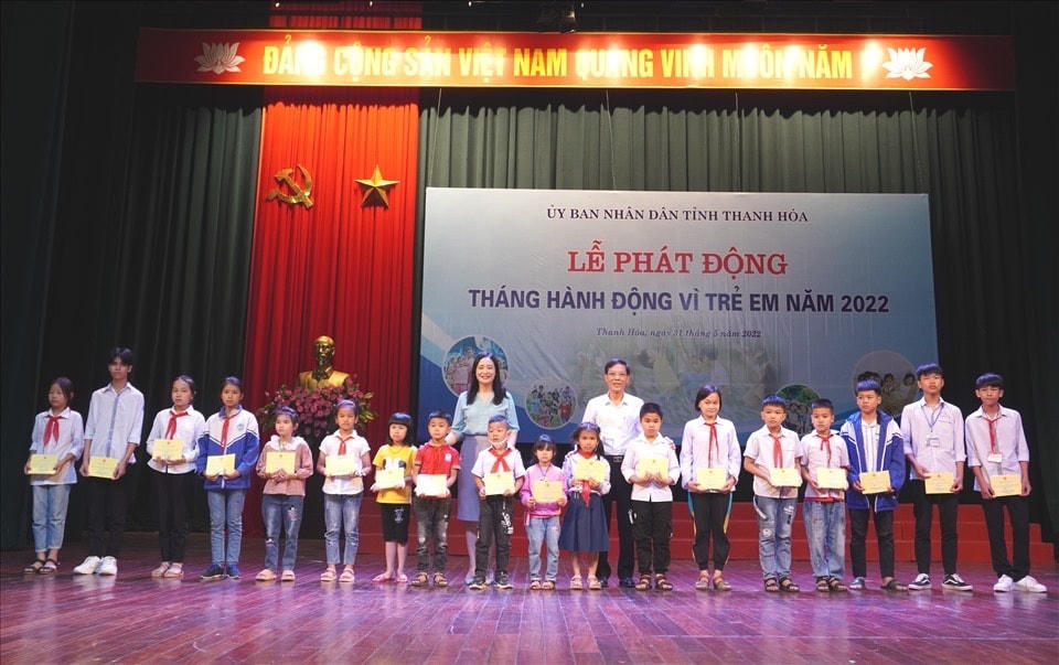 Trong khuôn khổ buổi lễ, UBND tỉnh Thanh Hóa đã trao bảo hiểm an sinh giáo dục tới 5 trẻ em; trao quà tặng 20 trẻ em hoàn cảnh đặc biệt có thành tích học tập tốt.