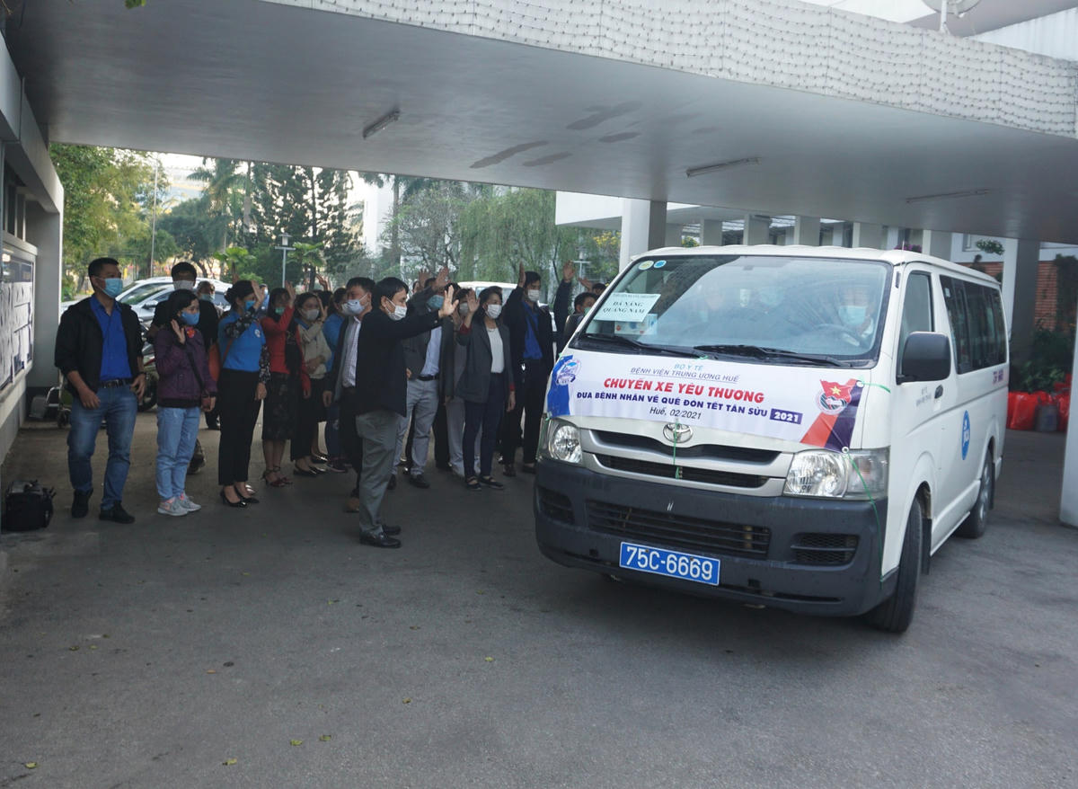 Theo bệnh viện Trung ương Huế, Chương trình Chuyến xe yêu thương năm nay được tổ chức trong 2 ngày 6 và 7/2, gồm 10 chuyến xe chở 300 bệnh nhân và người nhà khởi hành từ bệnh viện đi các tỉnh thành: Hà Tĩnh, Quảng Bình, Quảng Trị, Quảng Nam và Đà Nẵng. Mỗi dịp Tết đến xuân về, bệnh viện lại cùng các doanh nghiệp và các tổ chức, cá nhân hảo tâm luôn đồng hành, chia sẻ, hỗ trợ cho các bệnh nhân khó khăn về quê đón Tết.