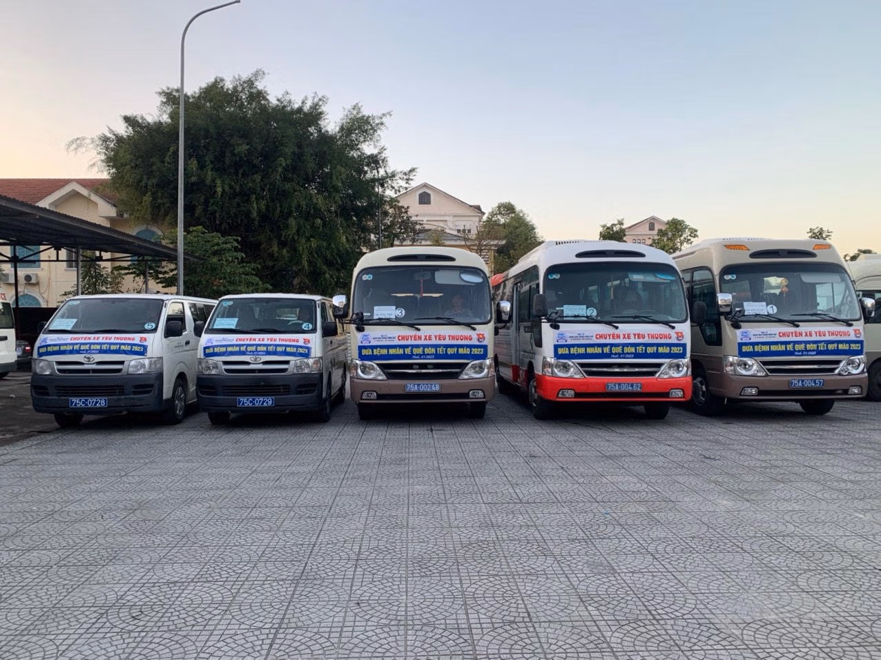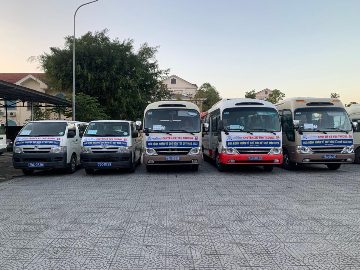 Năm nay, Bệnh viện Trung ương Huế tổ chức 5 chuyến xe chở gần 150 bệnh nhân và người nhà khởi hành từ bệnh viện đi các tỉnh, thành: Hà Tĩnh, Quảng Bình, Quảng Trị, Đà Nẵng, Quảng Nam, Quảng Ngãi.