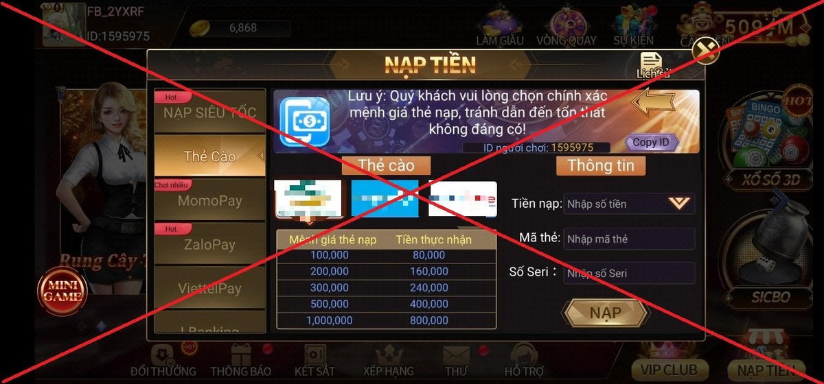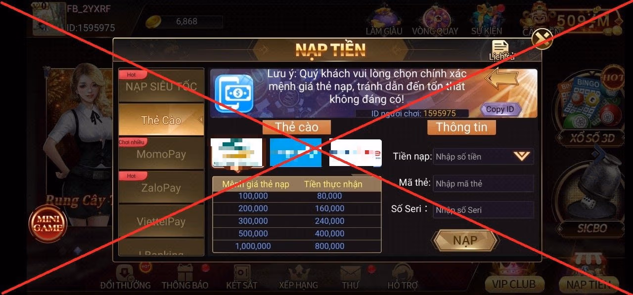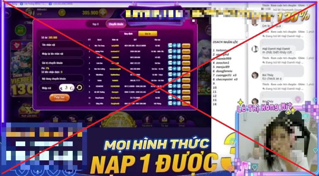 Cụ thể, trang page Facebook “Bé Min...” hay tài khoản Facebook cá nhân “Lê Thị H…” thường xuyên livetream quảng cáo cho rất nhiều tựa game “cờ bạc” trá hình. Mỗi lần livestream thường kéo dài từ 40 phút đến khoảng 1 tiếng thu hút hàng chục ngàn người xem. Nội dung trong các buổi livestream thường giới thiệu, hướng dẫn người xem tải game, cách chơi, cách thức nạp rút tiền, thậm chí còn ngang nhiên chơi thử và rủ rê người xem cược tiền cùng mình.