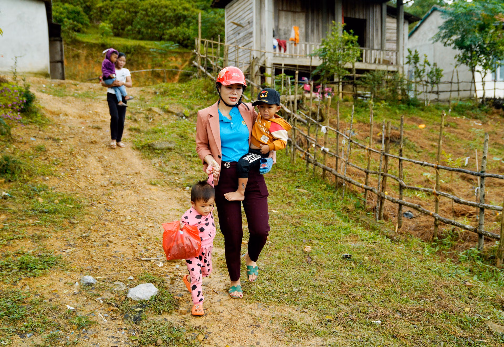 Sáng nào cũng vậy, hai cô giáo trường mầm non Hương Liên (thuộc bản Rào Tre, xã Hương Liên, huyện Hương Khê, tỉnh Hà Tĩnh) ngồi xe máy vượt cung đường dài hơn 3km để đến khu tái định cư đón các cháu dân tộc Chứt đến lớp.