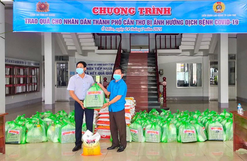 Sáng ngày 24/7, Liên đoàn Lao động (LĐLĐ) TP Cần Thơ và Công an tỉnh An Giang tổ chức đoàn đến 9 quận, huyện trên địa bàn TP Cần Thơ trao 1.000 phần quà hỗ trợ cho người dân và người lao động vượt qua dịch bệnh.