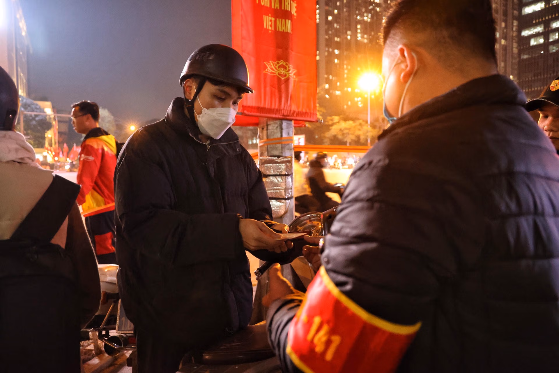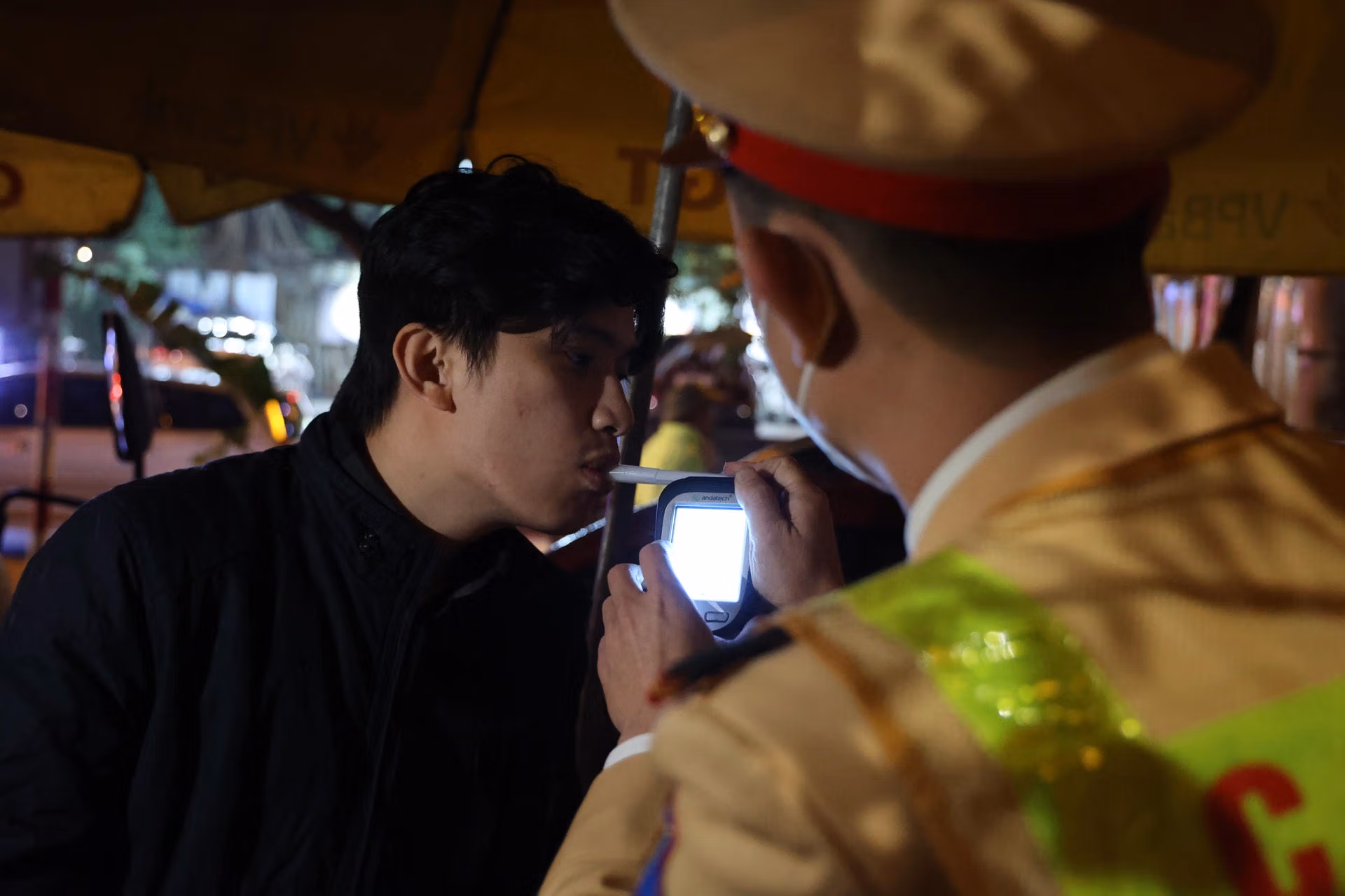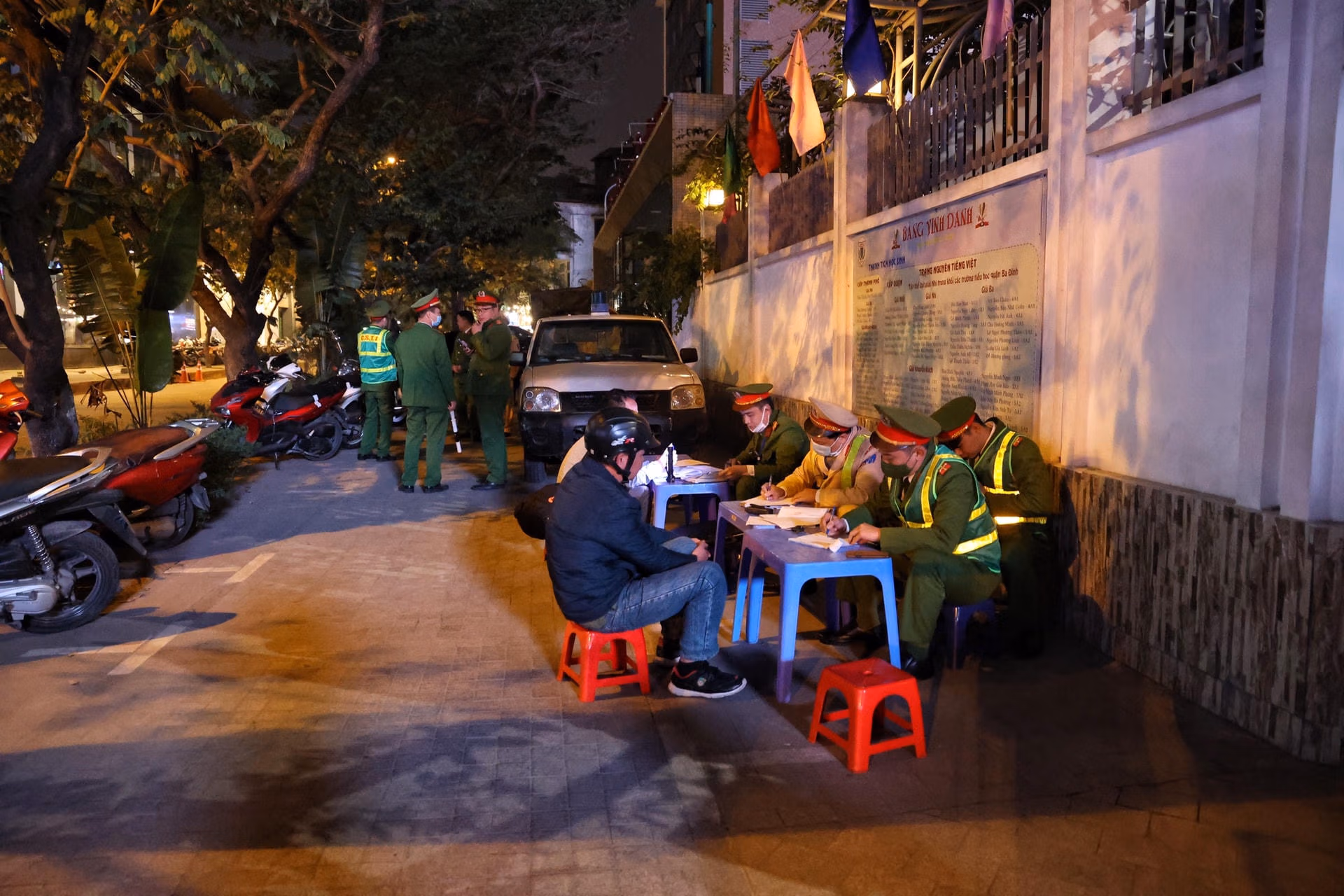 Tối 13/12, PV Báo Đại Đoàn Kết theo chân lực lượng liên ngành Y1/141 (Công an TP Hà Nội) làm nhiệm vụ tại nút giao Liễu Giai - Phan Kế Bính (Ba Đình, Hà Nội) để xử lý vi phạm nồng độ cồn.Chỉ ít phút sau khi lập chốt, tổ công tác phát hiện hàng loạt trường hợp người điều khiển phương tiện vi phạm kịch khung nồng độ cồn. Anh N.T.T điều khiển xe máy có biểu hiện bất thường đã bị tổ công tác yêu cầu dừng xe, kiểm tra. Qua kiểm tra kết quả, nồng độ cồn của anh T. là 0,503 mg/l khí thở. Đây là mức nồng độ cồn rất cao, so với mức vi phạm tối đa được quy định tại Nghị định 100/NĐ-CP.Tương tự, Anh N.C.H. (Đống Đa, Hà Nội) điều khiển xe máy theo hướng từ Liễu Giai đi Nguyễn Chí Thanh bị tổ công tác yêu cầu dừng xe, kiểm tra. Kết quả nồng độ cồn của anh H. là 0,654 mg/l khí thở. Đây là mức nồng độ cồn rất cao, gấp 1,6 lần mức vi phạm tối đa được quy định tại Nghị định 100/NĐ-CP.Với lỗi vi phạm trên, tài xế N.C.H. bị lực lượng CSGT lập biên bản xử phạt 7 triệu đồng, tước giấy phép lái xe 23 tháng và tạm giữ phương tiện 7 ngày.Bên cạnh đó, tổ công tác còn liên tiếp xử lý nhiều vi phạm do không đội mũ bảo hiểm, điều khiển xe mô tô đèo ba, lạng lách.Đáng chú ý, có nhiều đối tượng điều khiển xe khi chỉ 15 tuổi, không đội mũ bảo hiểm và sử dụng biển số giả; một số khác vẫn điều khiển phương tiện tham gia giao thông sau khi uống rượu, bia.Đặc biệt, do nhìn thấy lực lượng chức năng nhiều đối tượng ngang nhiên quay xe bỏ chạy gây mất ATGT cũng bị lực lượng chức năng đón lõng xử lý nghiêm.Trung tá Nguyễn Ngọc Thuyên, Phó Đội trưởng Đội Cảnh sát giao thông số 1, Phòng CSGT Công an TP Hà Nội cho biết, thực hiện cao điểm tấn công, trấn áp tội phạm, đảm bảo an ninh trật tự, an toàn xã hội dịp Tết Nguyên đán, trong 2 giờ đồng hồ trực chốt kiểm tra hành chính, các tổ công tác 141 Công an TP Hà Nội đã liên tiếp phát hiện nhiều trường hợp vi phạm kịch khung nồng độ cồn. Đáng chú ý, nhiều lái xe khi thấy lực lượng 141 đã cố tình quay đầu bỏ chạy, có trường hợp gây tai nạn cho người đi đường.Trung tá Nguyễn Ngọc Thuyên cho biết thêm, có không ít các trường hợp khi thấy tổ công tác đã quay đầu bỏ chạy gây mất an toàn cho chính người điều khiển phương tiện, người tham gia giao thông khác và lực lượng chức năng. "Các trường hợp thanh niên trẻ, khi nhìn thấy lực lượng chức năng sinh ra tâm lý sợ hãi nên bỏ chạy. Với thanh niên ngổ ngáo, xăm trổ, có dấu hiệu nghi vấn, lực lượng công tác sẽ bố trí đón lõng, chặn bắt. Tuy nhiên lực lượng cũng bố trí lực lượng để làm sao vừa bắt được đối tượng nhưng vừa đảm bảo an toàn cho người dân tham gia trên đường cũng như lực lượng chức năng", Trung tá Thuyên nhấn mạnh.Lực lượng chức năng lập biên bản đối với các trường hợp vi phạm.