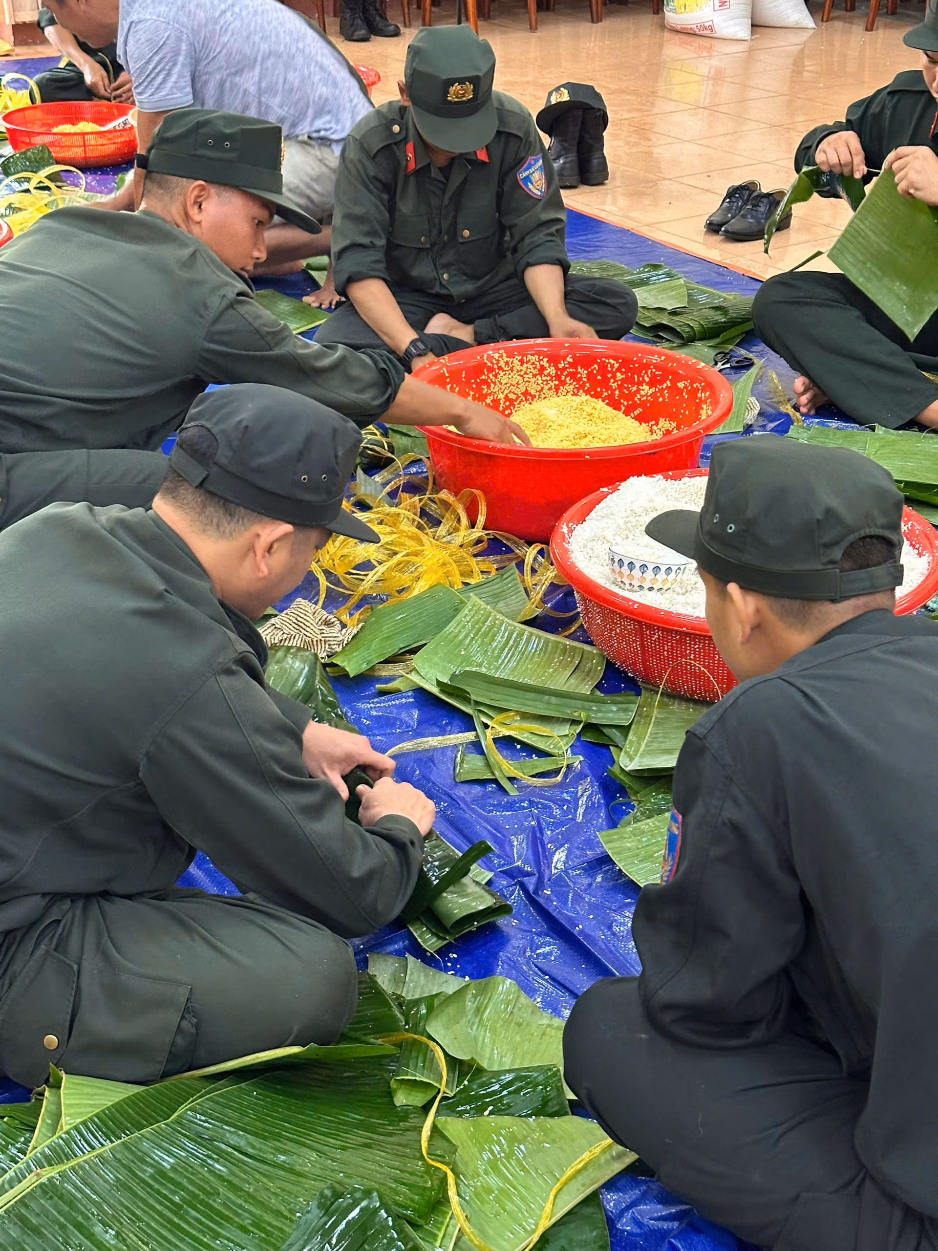 Công an và người dân phường Tân An gói bánh chưng tiếp sức đồng bào vùng lũ Đắk Lắk