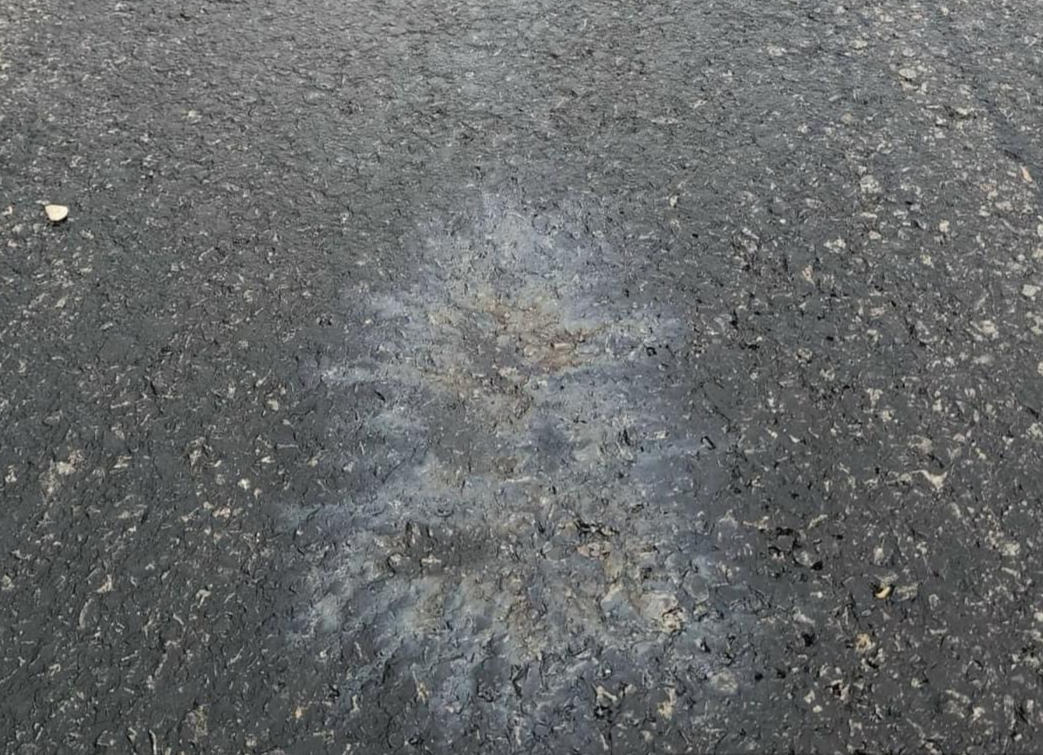 Kiểm tra thực địa, nhận thấy mặt đường đã bị đổ hóa chất màu đen, có xuất hiện một lớp nhựa trên cùng đã bị phân hủy. Ngoài ra, tại một số vị trí khác, mặt đường đã bị đổ hóa chất trước đó, khi lưu thông lốp xe đã cuốn đi lớp hóa chất và lợi nhựa đã bị phân hủy còn trơ lại mặt đá.