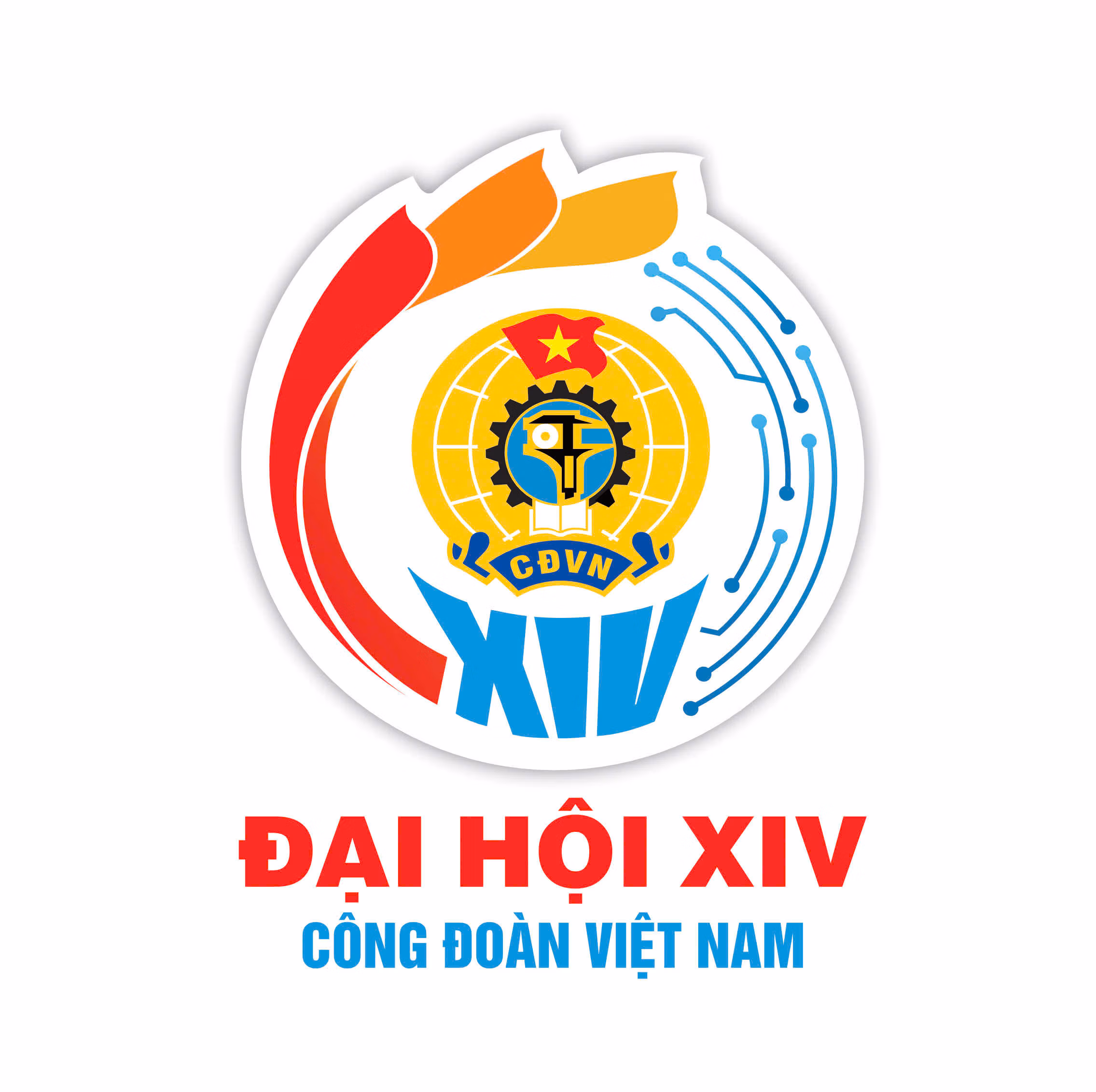 Bao quanh là vòng tròn vi mạch - bán dẫn, được thể hiện bằng ngôn ngữ đồ họa tinh gọn, hiện đại, mang ý nghĩa về chuyển đổi số, khoa học - công nghệ và đổi mới sáng tạo. Chi tiết này khẳng định vai trò tiên phong của Công đoàn Việt Nam trong tiến trình hội nhập quốc tế, thích ứng với kỷ nguyên số, kỷ nguyên vươn mình của dân tộc.