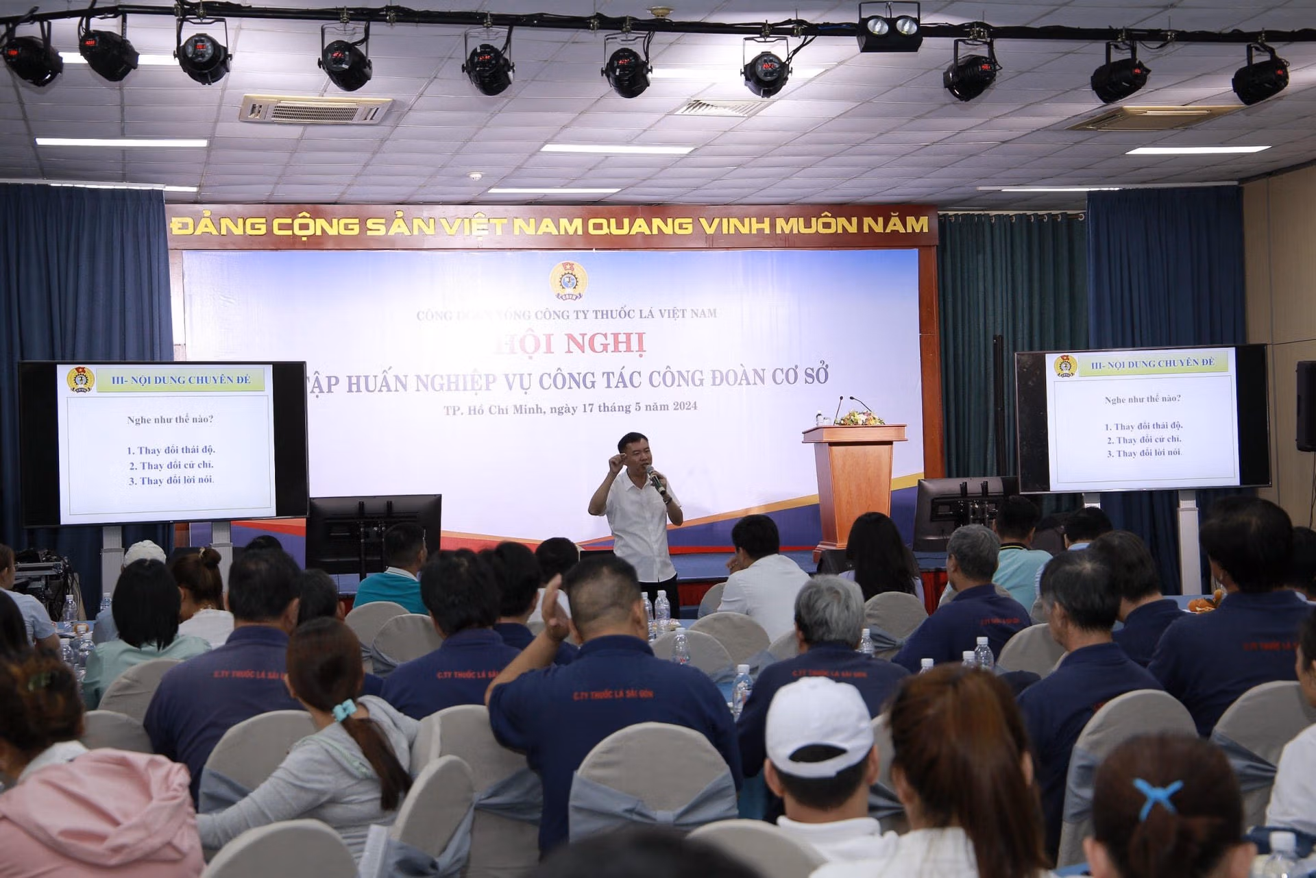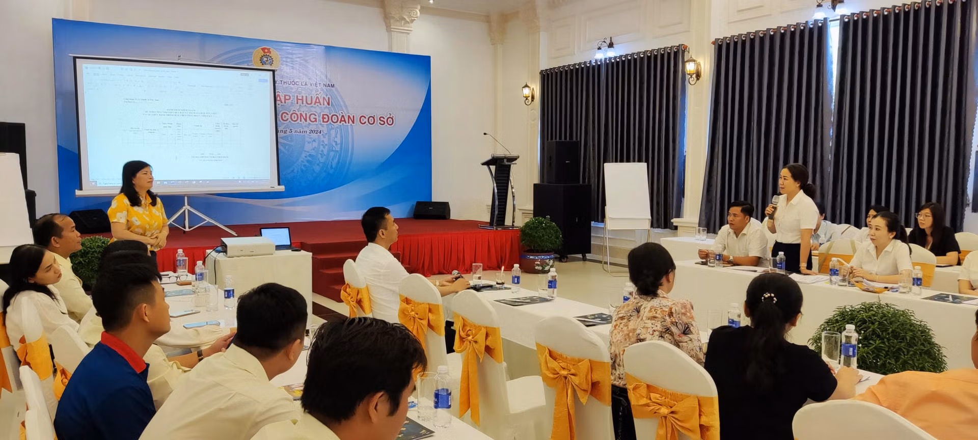 Trong 3 ngày 15,16,17 tháng 5 năm 2024, Công đoàn Tổng công ty Thuốc lá Việt Nam đã tổ chức 03 lớp tập huấn cho cán bộ công đoàn cơ sở khu vực phía Nam về hệ thống tổ chức công đoàn, nội dung và phương pháp, kỹ năng hoạt động công đoàn cơ sở, công đoàn bộ phận, tổ công đoàn đồng thời triển khai Nghị quyết công đoàn các cấp.