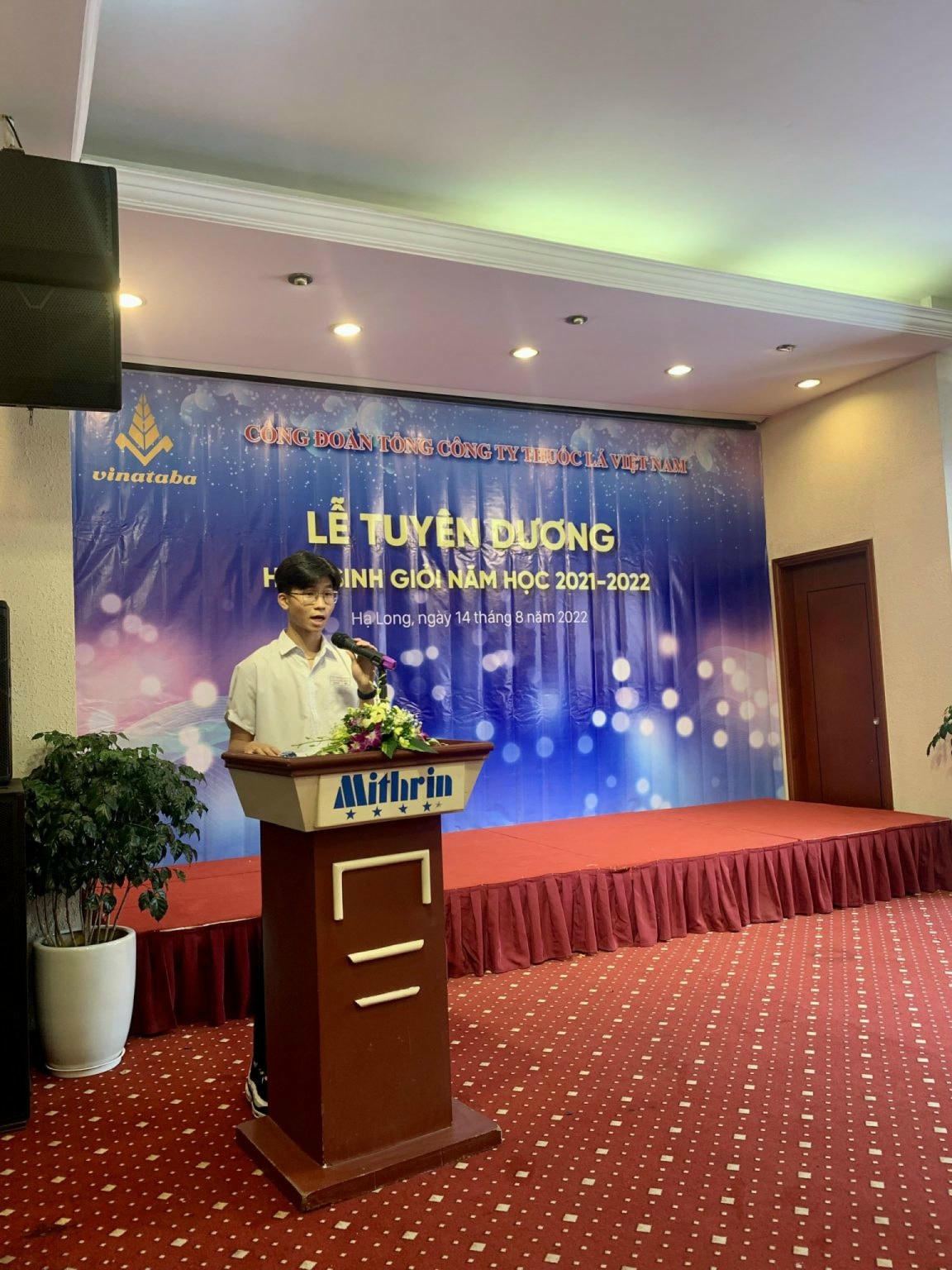 Ngày 14/8, tại thành phố Hạ Long – Quảng Ninh , Công đoàn Tổng công ty Thuốc lá Việt Nam đã tổ chức Lễ tuyên dương khen thưởng học sinh giỏi lần thứ XIX, năm học 2021 – 2022 cho các cháu là con CNVCLĐ Tổng công ty.
