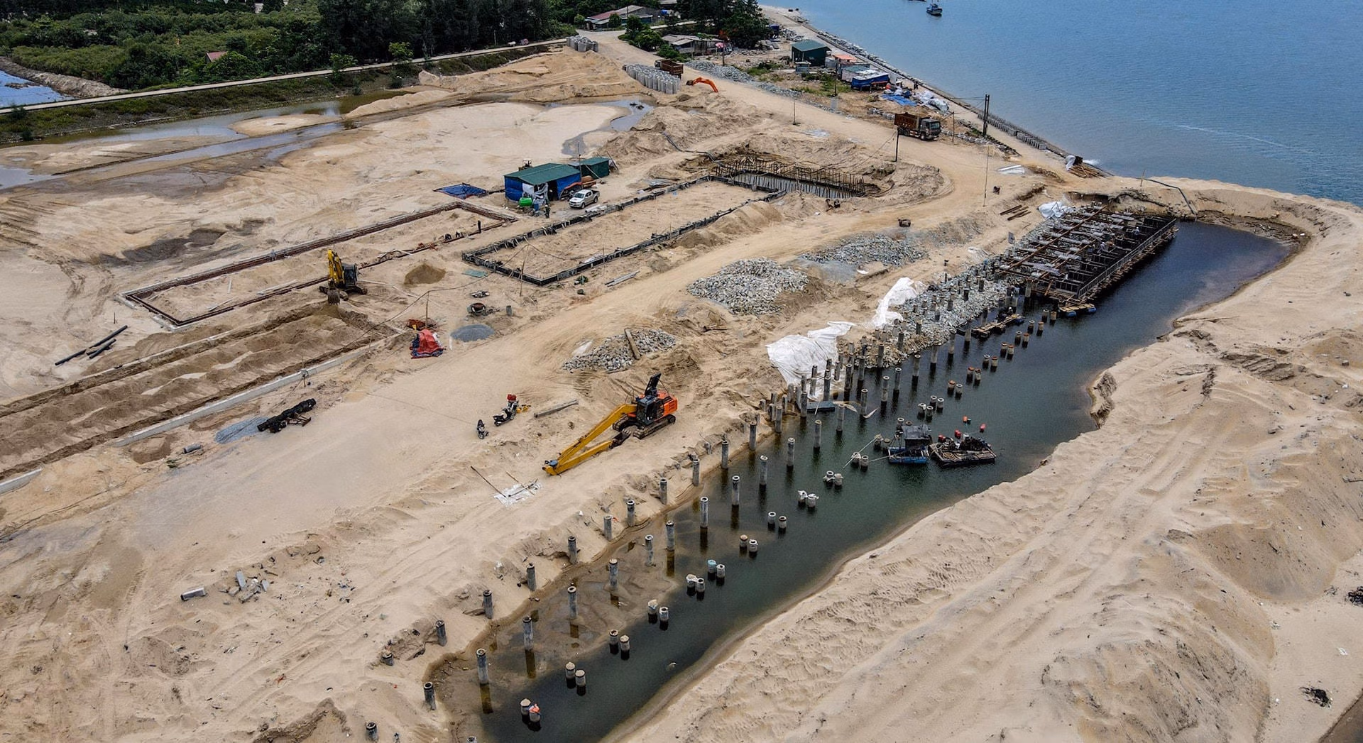 Công trường cảng cá 280 tỷ đồng ở Hà Tĩnh góc nhìn từ trên cao