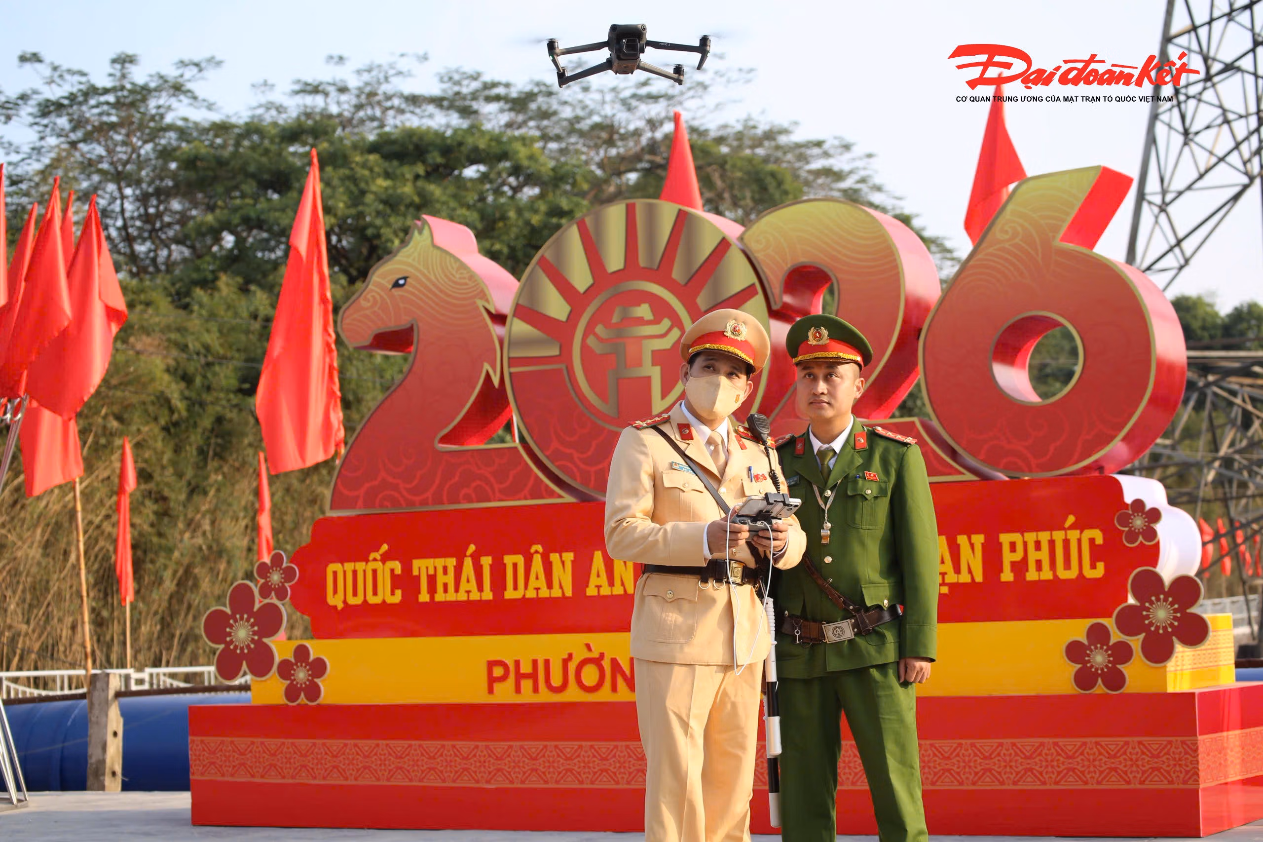 Chiều 20/2, tại nút giao Đỗ Mười – Quốc lộ 1B (phường Yên Sở, Hà Nội), Đội CSGT đường bộ số 14 phối hợp Công an phường triển khai flycam giám sát tình hình giao thông.