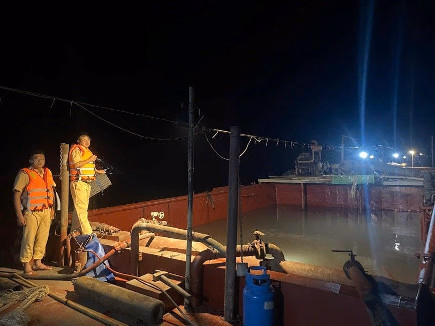 Cụ thể, khoảng 21h10 ngày 6/10, tổ công tác của Thủy đoàn I bí mật làm nhiệm vụ tại khu vực cửa Ba Lạt (xã Giao Thủy, huyện Giao Thủy, tỉnh Nam Định) đã phát hiện phương tiện BN-13XX gắn số đăng kiểm V99-006XX đang tiến hành hút cát từ dưới biển lên 2 khoang chứa hàng của phương tiện.
