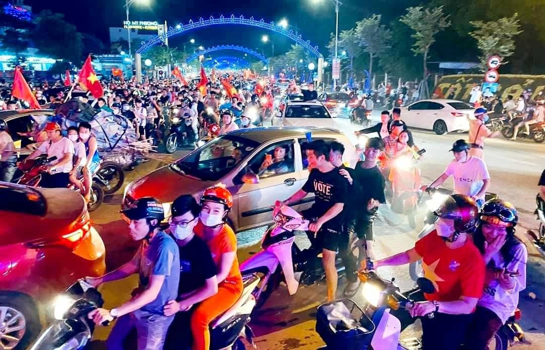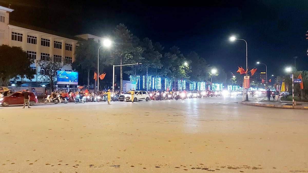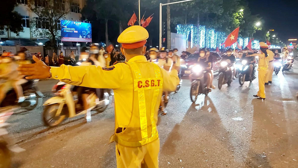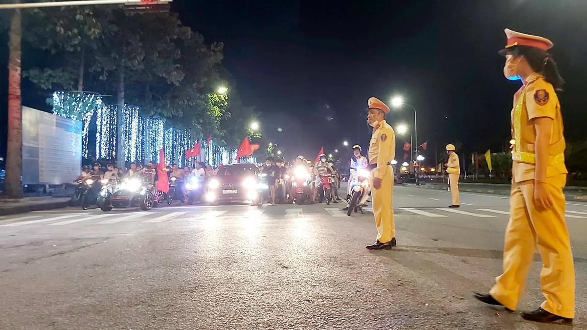 CSGT TP Vinh phân luồng khi người dân 'đi bão' mừng đội tuyển