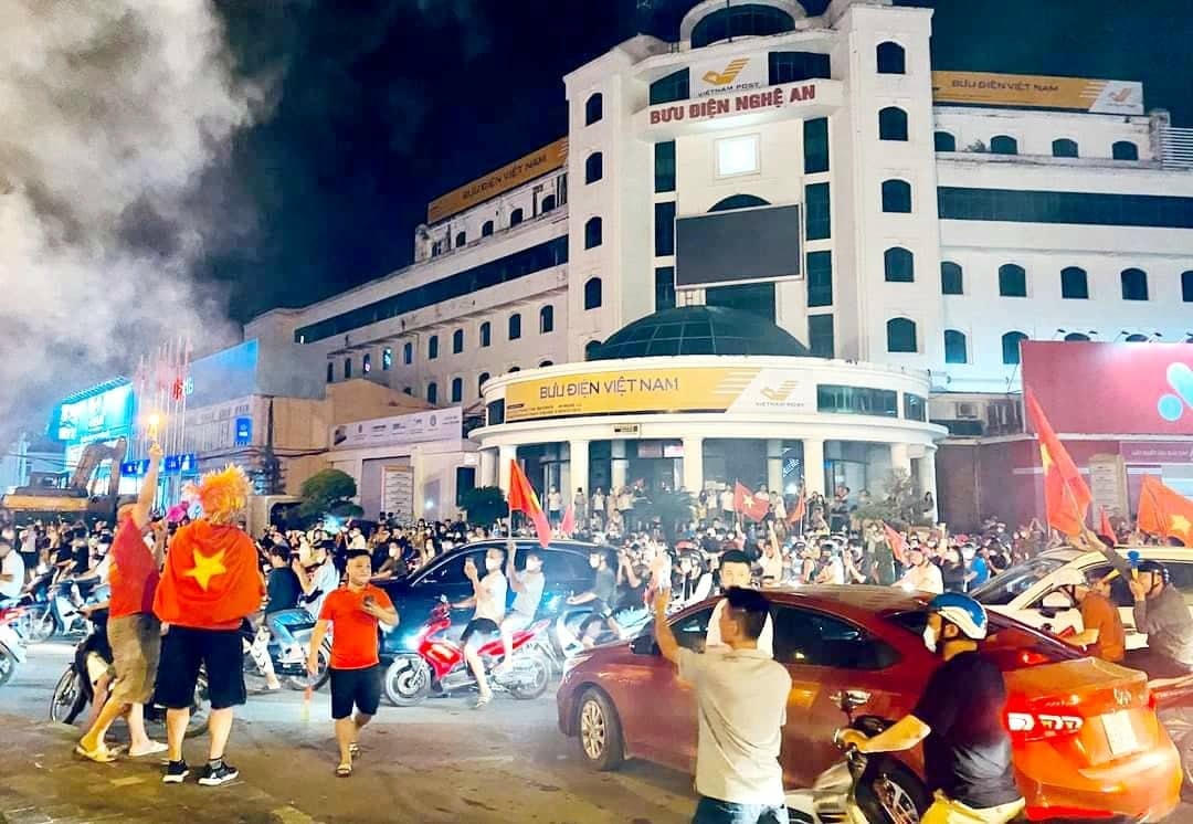 Sau khi trọng tài thổi còi kết thúc trận đấu giữa U23 Việt Nam và U23 Thái Lan, cũng là lúc người dân TP Vinh đổ xô ra đường ăn mừng chức vô địch của đội nhà.