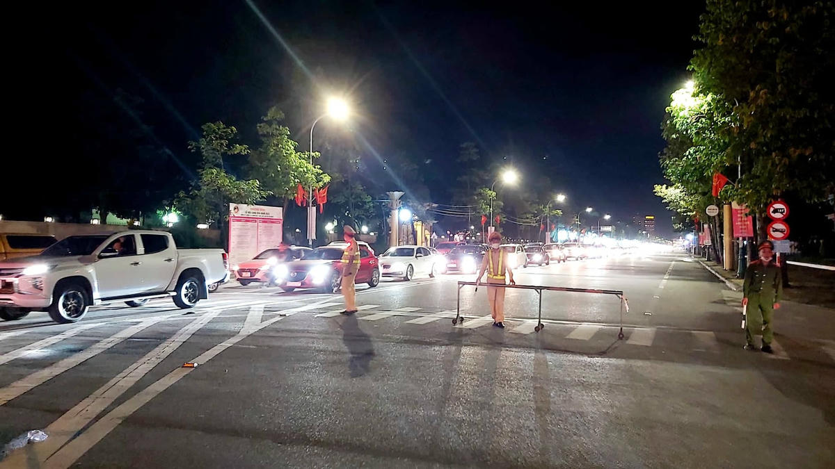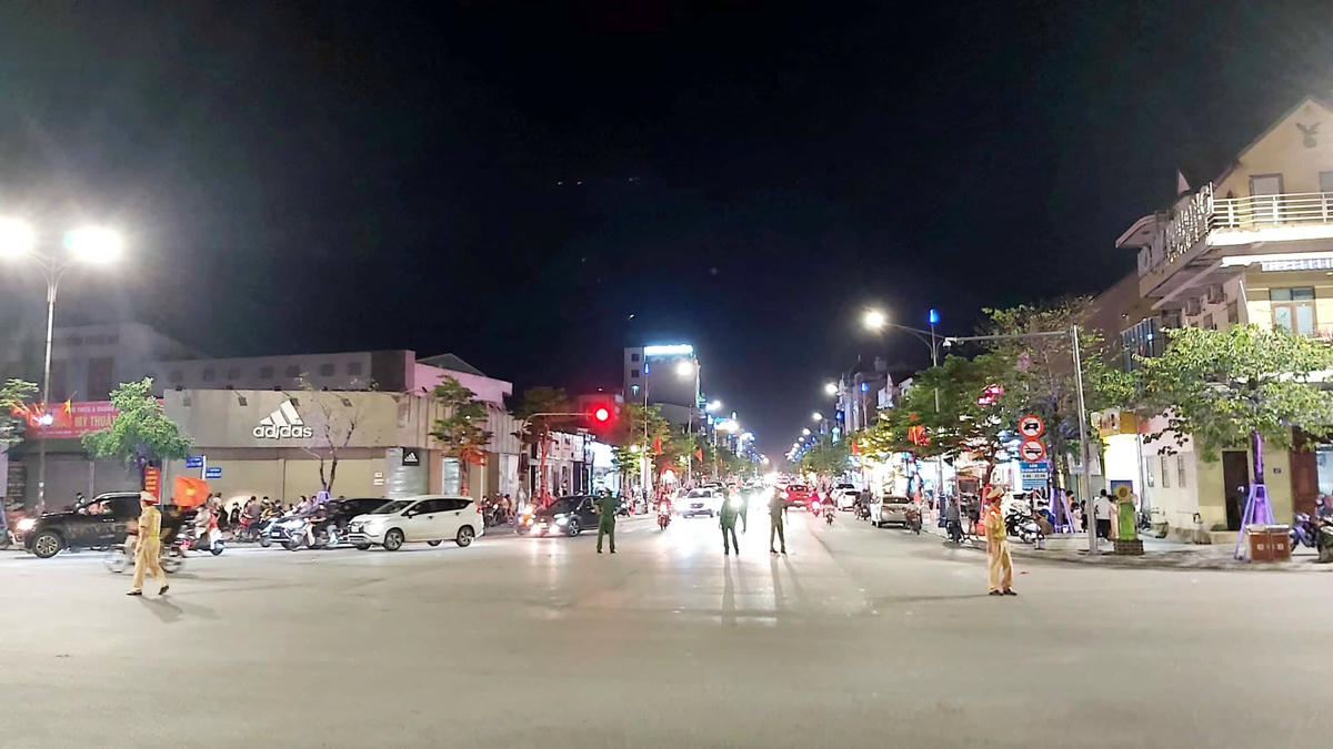 CSGT TP Vinh được triển khai tại các ngã ba, ngã tư, vòng xuyến... để phân luồng, hạn chế ùn tắc trong đêm đội tuyển U23 giành Huy chương vàng SEA Games 31.