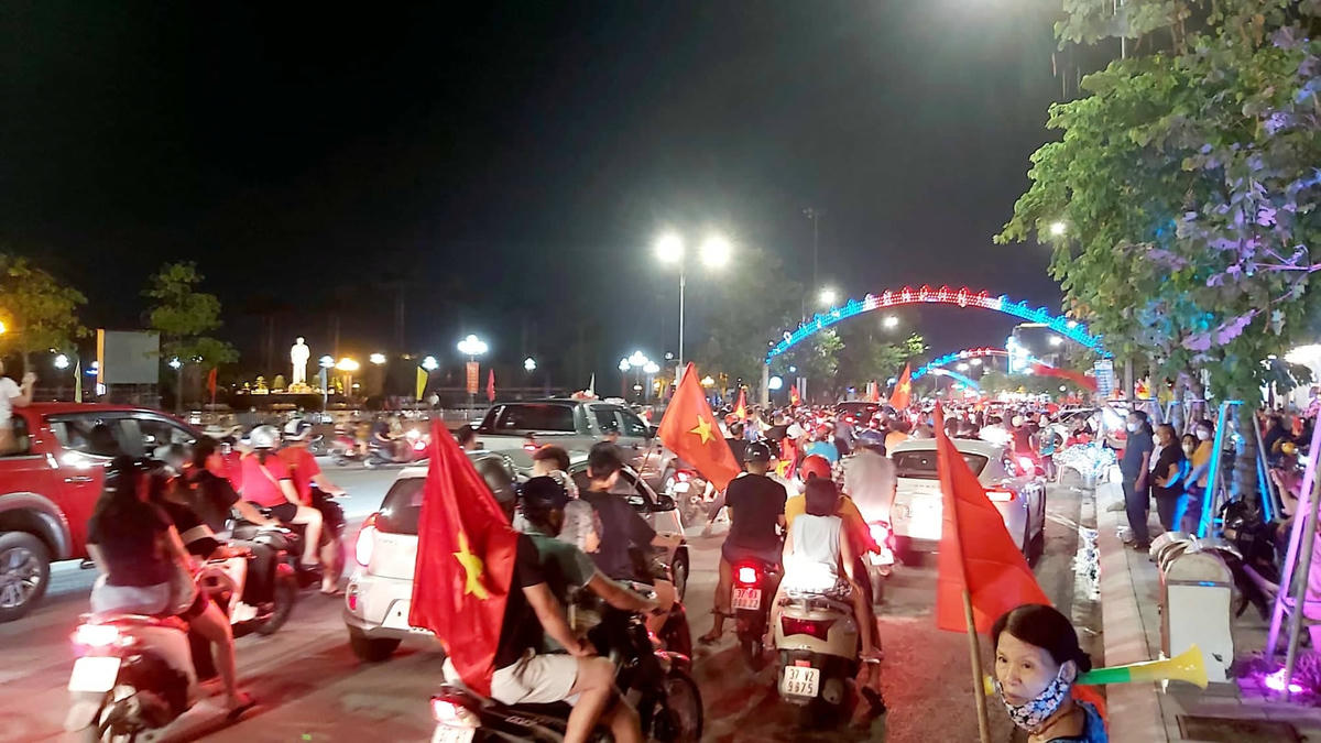 Ngay từ các ngả đường như Trường Thi, Hồ Tùng Mậu, Nguyễn Văn Cừ, Nguyễn Thị Minh Khai... lượng xe lưu thông ngày một đông. Đặc biệt, quanh khu vực Quảng trường Hồ Chí Minh dòng người ùn ùn đổ ra đường ăn mừng, khiến nhiều đoạn có hiện tượng ùn ứ, tắc nghẽn...