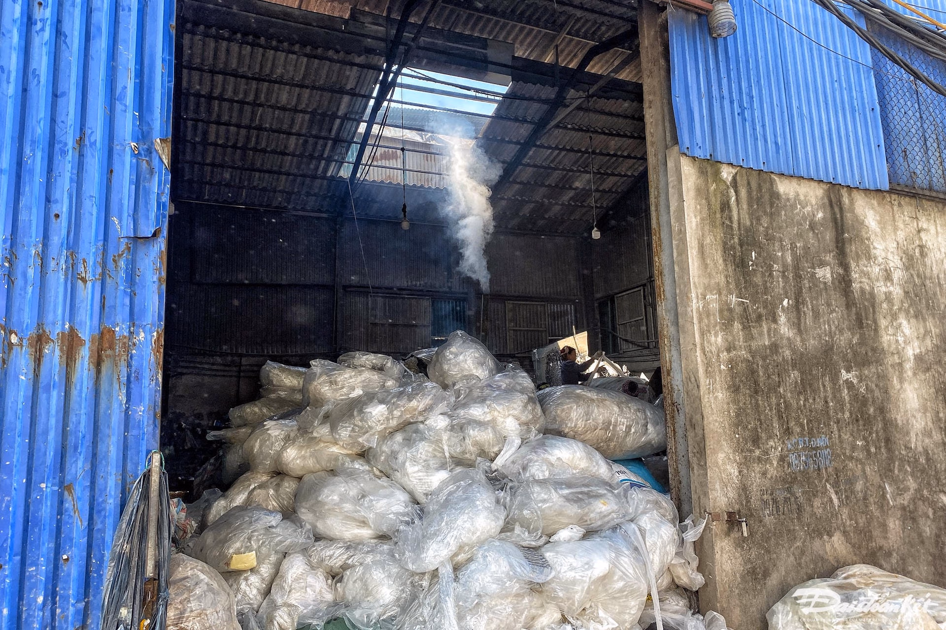 Các xe tự chế, chất cao từ 4-6m các loại nhựa liên tục ra vào tấp nập. Tại các ống khói liên tục thải ra khói có màu đen xì, mùi khét lẹt từ nhựa bị đốt cháy.