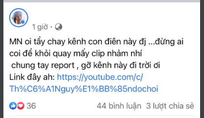 Thậm chí, một số phụ huynh còn cho rằng, việc "khóc lóc", giải thích của Thơ Nguyễn cũng tương tự như như lần "lùm xùm" trước, nếu không cùng "báo cáo" để "gỡ" kênh thì việc xây dựng các video clip có nội dung không phù hợp sẽ còn tiếp diễn.