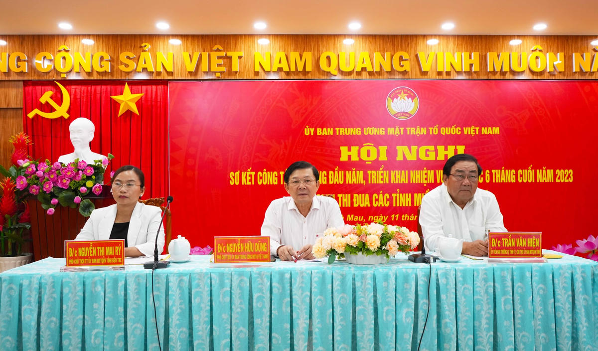 Ngày 11/7, tại tỉnh Cà Mau, Cụm thi đua các tỉnh Tây Nam Bộ tổ chức Hội nghị sơ kết đánh giá kết quả công tác Mặt trận 6 tháng đầu năm và triển khai nhiệm vụ trọng tâm công tác 6 tháng cuối năm 2023. Phó Chủ tịch UBTƯ MTTQ Việt Nam Nguyễn Hữu Dũng chủ trì Hội nghị.