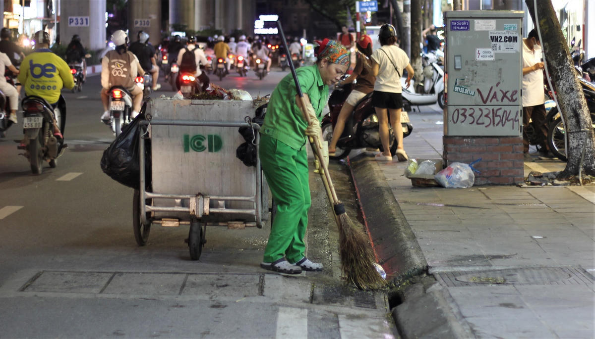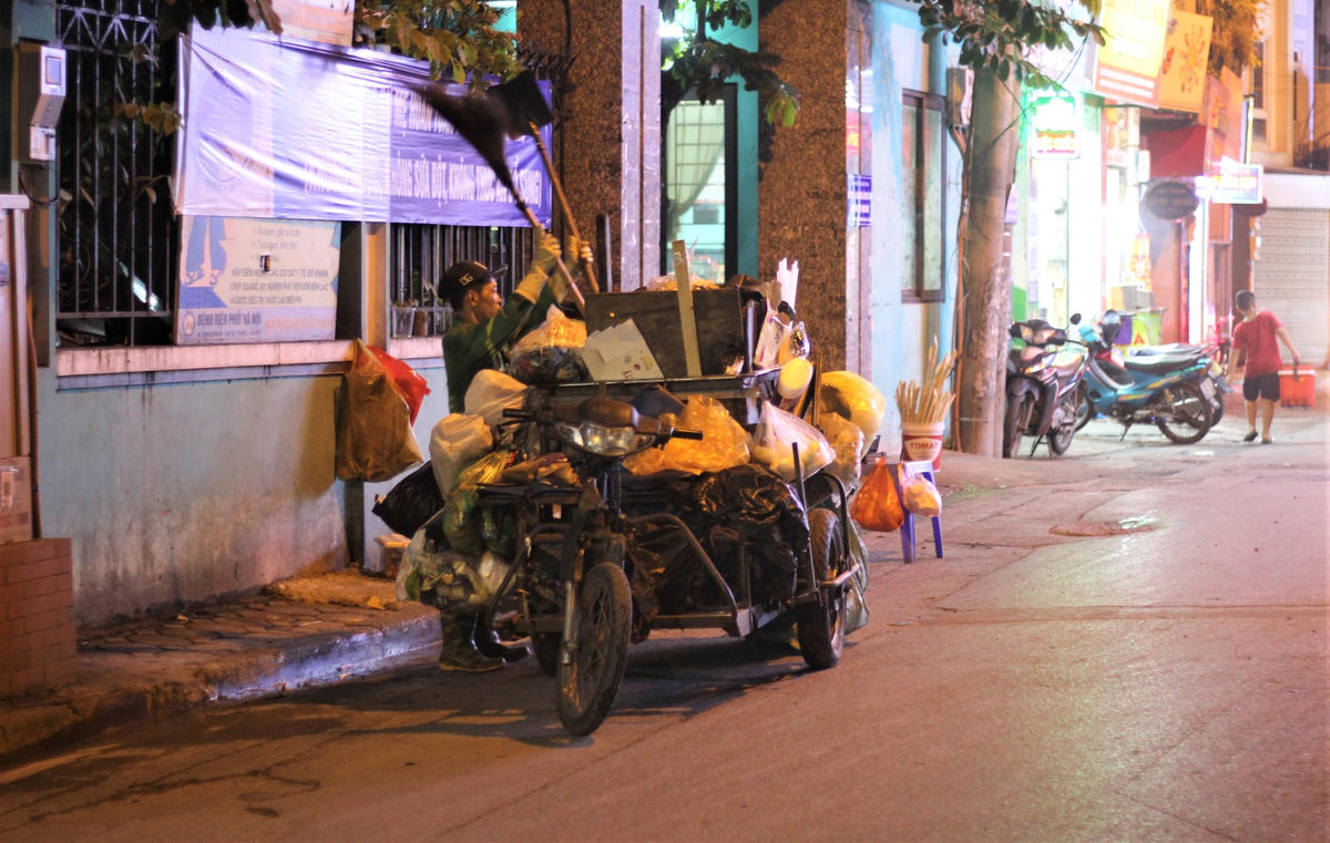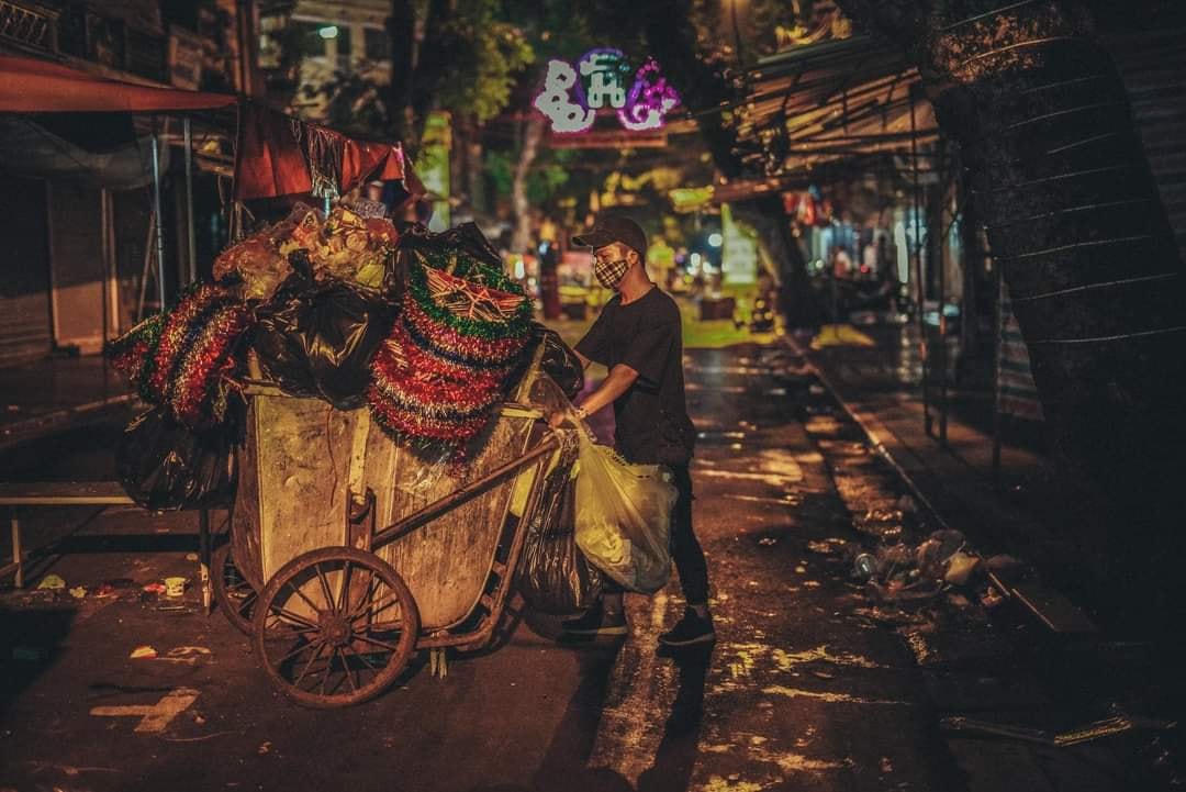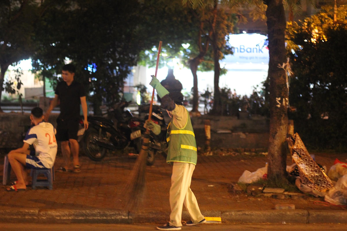 Tưởng chừng khi màn đêm bao trùm sẽ là lúc người người vui vẻ, nghỉ ngơi sau 1 ngày dài làm việc mệt nhọc. Nhưng đây lại chính là thời điểm bắt đầu công việc của người lao động về đêm. Ảnh: Huy Tuấn.Hàng đêm, hình ảnh quét rác bên lề đường của người công nhân đến tờ mờ sáng đã trở nên quá đỗi quen thuộc.Tỉ mẩn với công việc của mình dù vất vả. Chiếc xe không còn nguyên vẹn trở thành phương tiện giúp người công nhận đưa rác đến điểm tập kết.Màn đêm rũ xuống, không ít người mò mẫm trong từng túi rác để có thể thu nhặt những chiếc chai nhựa để đưa đi bán kiếm từng đồng lo cho cuộc sống bộn bề. Đã hơn 10h tối, bà Tứ (74 tuổi) vẫn ngồi bên vỉa hè mong ngóng khách mua số trứng của bà. Bà tâm sự:"Số trứng này là gà nhà bà đẻ được. Cứ tối đến bà lại đưa ra đây bán. Bán không được nhiều nên vẫn phải cố ngồi lại đến khuya mong có người mua".Chị chủ ngồi ngóng khách bên chiếc xe hàng quen thuộc."Ai xôi lạc, bánh khúc đây" , tiếng rao trên chiếc xe đạp len lỏi qua từng con ngõ vào đêm muộn.Người dân phường Dịch Vọng (quận Cầu Giấy) luôn thấy hình ảnh anh Sinh (45 tuổi) cần mẫn với công việc từ sáng đến tối muộn. Anh Sinh chia sẻ: "Công việc này vất vả lắm, làm quần quật từ sáng đến tối nhưng vì kế sinh nhai nên anh phải cố gắng thôi. Làm đến lúc nhà nhà đều tắt đèn đi ngủ thì lúc đấy công việc cũng dần xong".
