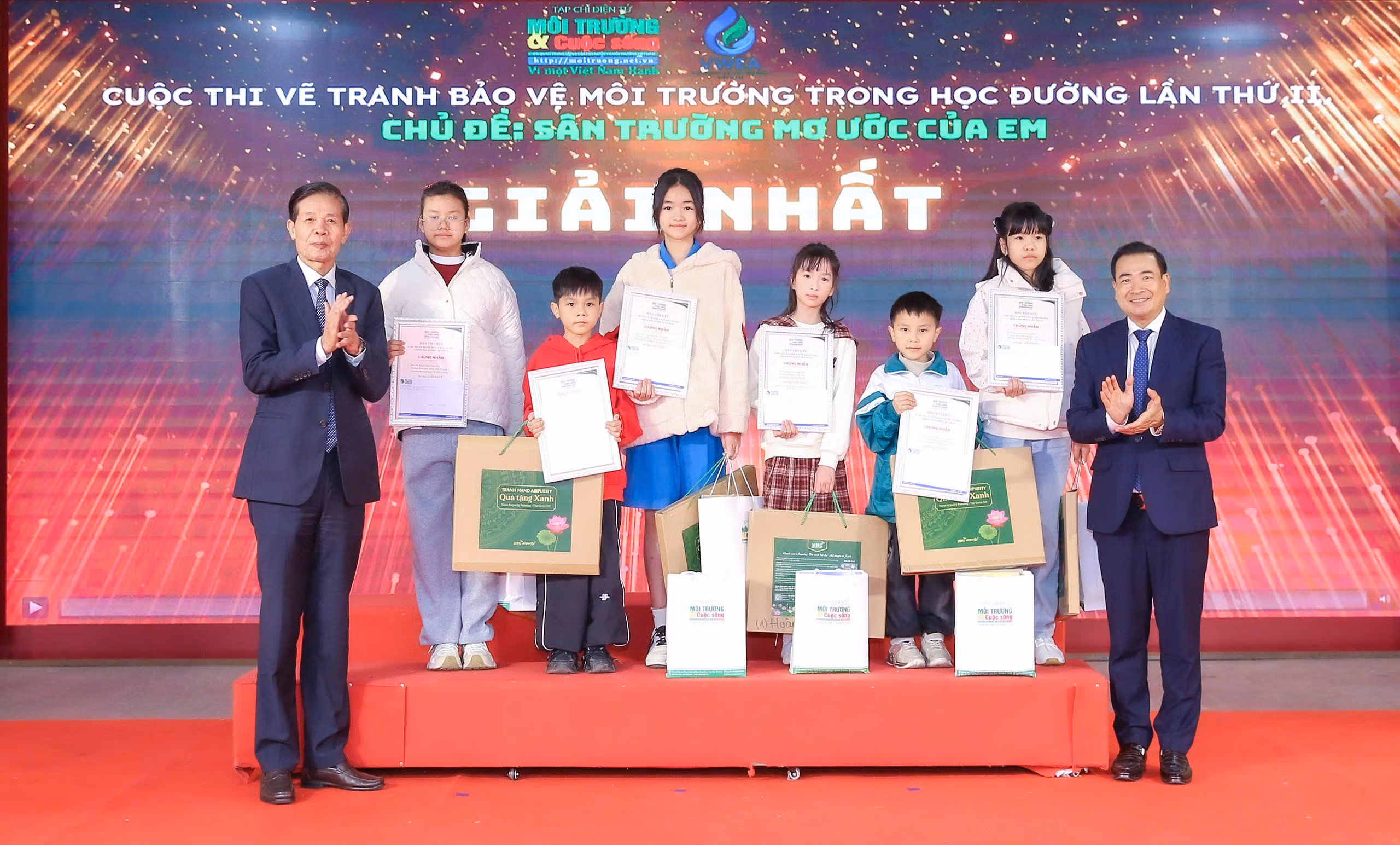 Sáng 27/12/2025, tại Trường Tiểu học Nguyễn Viết Xuân (Hà Nội), Lễ trao giải Cuộc thi vẽ tranh về Bảo vệ môi trường trong học đường lần thứ hai do Tạp chí Điện tử Môi trường và Cuộc sống tổ chức đã diễn ra trong không khí trang trọng, ấm áp. Hơn 200 học sinh tiêu biểu đến từ nhiều tỉnh, thành trên cả nước trực tiếp tham dự, mang theo niềm vui, niềm tự hào và những ước mơ trong trẻo về một mái trường xanh – sạch – đẹp.