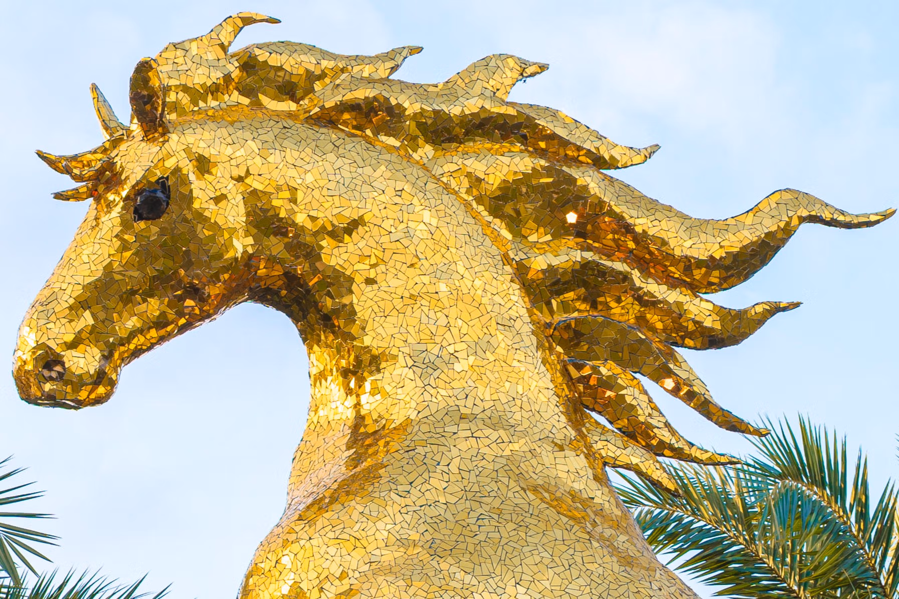 Các nghệ nhân đã kỳ công cắt ghép tỉ mỉ 150.000 tấm ALU nhỏ để tạo bề mặt sống động, chuyển tải hoàn hảo vẻ uy nghi, vững chãi và thần thái, tạo hiệu ứng phản chiếu ánh sáng lung linh cả ban ngày lẫn trong đêm, mang lại điểm nhấn thẩm mỹ cho khu vực cửa ngõ sân bay quốc tế.