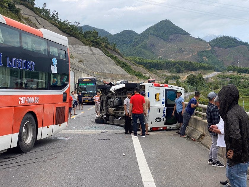 Thông tin cho biết, chiều 30/5, xe ô tô khách giường nằm BKS 73F-000.63 của nhà xe Hoàng Huân do Nguyễn Văn Tuấn (43 tuổi, trú tại xã Đông Thanh, huyện Lâm Hà, Lâm Đồng) điều khiển (phụ xe Nguyễn Văn Hoàng, 24 tuổi, trú xã Vạn Trạch, huyện Bố Trạch, Quảng Bình) chở 42 người lưu thông theo hướng Bắc – Nam trên cao tốc La Sơn – Túy Loan.