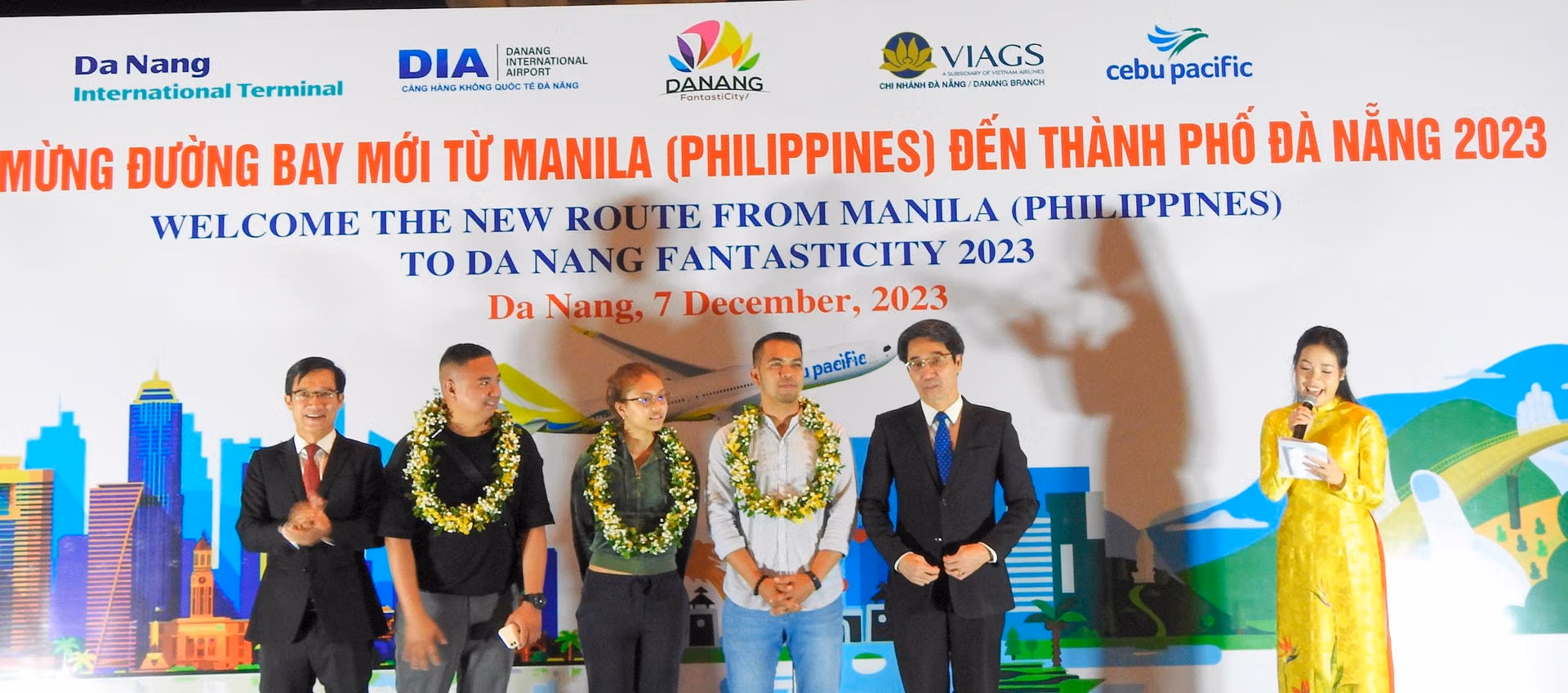 Lễ đón chuyến bay trực tiếp đầu tiên đến từ Manila có sự tham dự của Phó Chủ tịch UBND TP Đà Nẵng Trần Chí Cường và lãnh đạo Sở Du lịch, Cảng vụ Hàng không Miền Trung, Cảng hàng không quốc tế Đà Nẵng, Công ty CP Đầu tư khai thác Nhà ga quốc tế Đà Nẵng, Hiệp hội Du lịch Đà Nẵng, Quỹ Xúc tiến Phát triển Du lịch Đà Nẵng, Hãng hàng không Cebu Pacific Air.