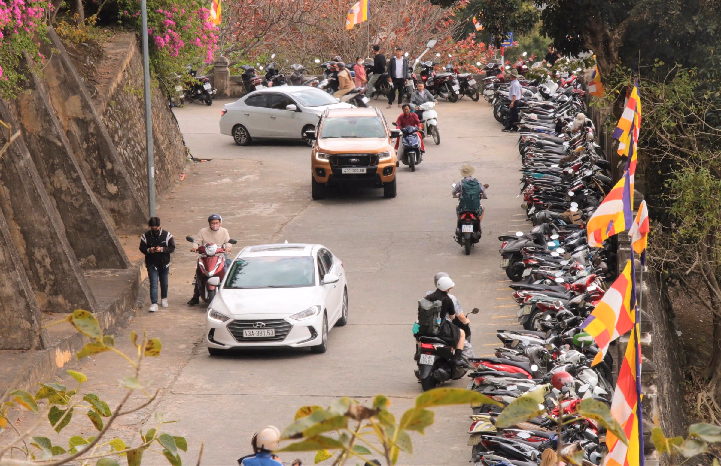 Từ ngày 17 đến sáng 18/2 (tức mùng 1 và mùng 2 Tết), đông đảo người dân và du khách đã đến chùa Linh Ứng trên bán đảo Sơn Trà, TP Đà Nẵng để dâng hương, cầu bình an, tài lộc đầu xuân. Lượng người và phương tiện tăng cao khiến tuyến đường dẫn lên chùa có thời điểm xảy ra ùn ứ cục bộ.