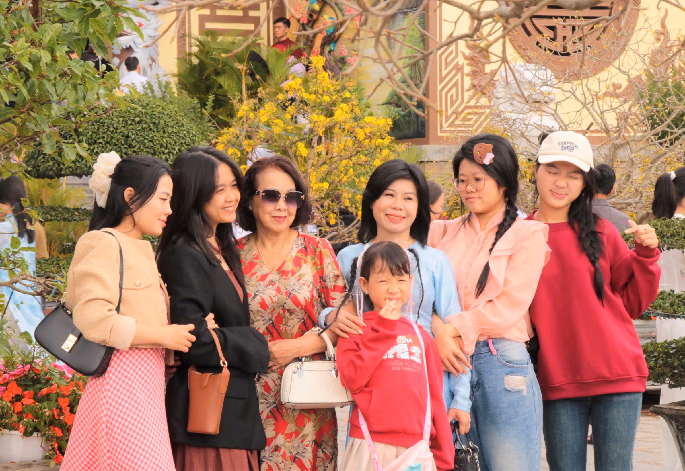 Nhiều gia đình cũng tranh thủ du xuân, chụp ảnh lưu niệm, lưu giữ những khoảnh khắc ý nghĩa bên người thân. Việc đi lễ chùa đầu năm từ lâu đã trở thành nét đẹp văn hóa, gửi gắm ước mong về một năm bình an, mạnh khỏe và thuận lợi.