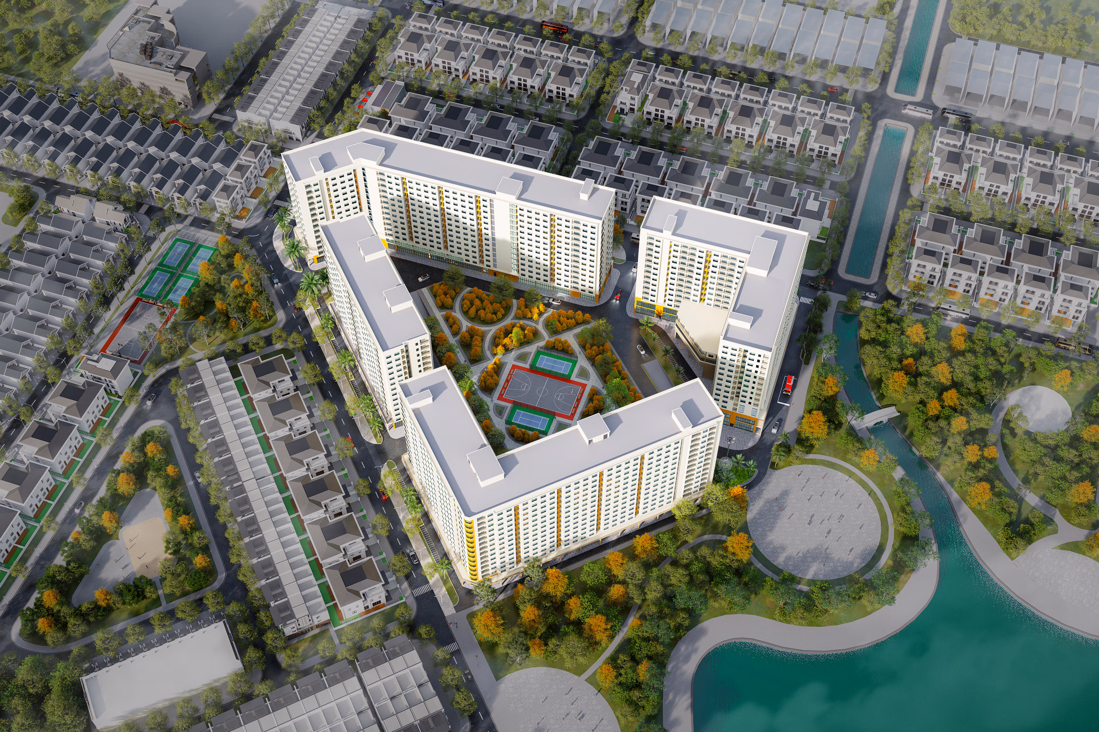 Tại khu đất chung cư số 5, dự án Nhà ở xã hội do Công ty CP Đầu tư phát triển nhà ở Toàn Cầu làm nhà đầu tư, quy mô hơn 2,8 ha, tổng diện tích sàn khoảng 146.000 m2, với 1.306 căn hộ, tổng vốn đầu tư gần 1.740 tỷ đồng, dự kiến hoàn thành năm 2027. Dự án gồm 3 tòa chung cư nhà ở xã hội (1.040 căn hộ), 1 tòa chung cư nhà ở thương mại, cao 14 tầng, mật độ xây dựng 36%.