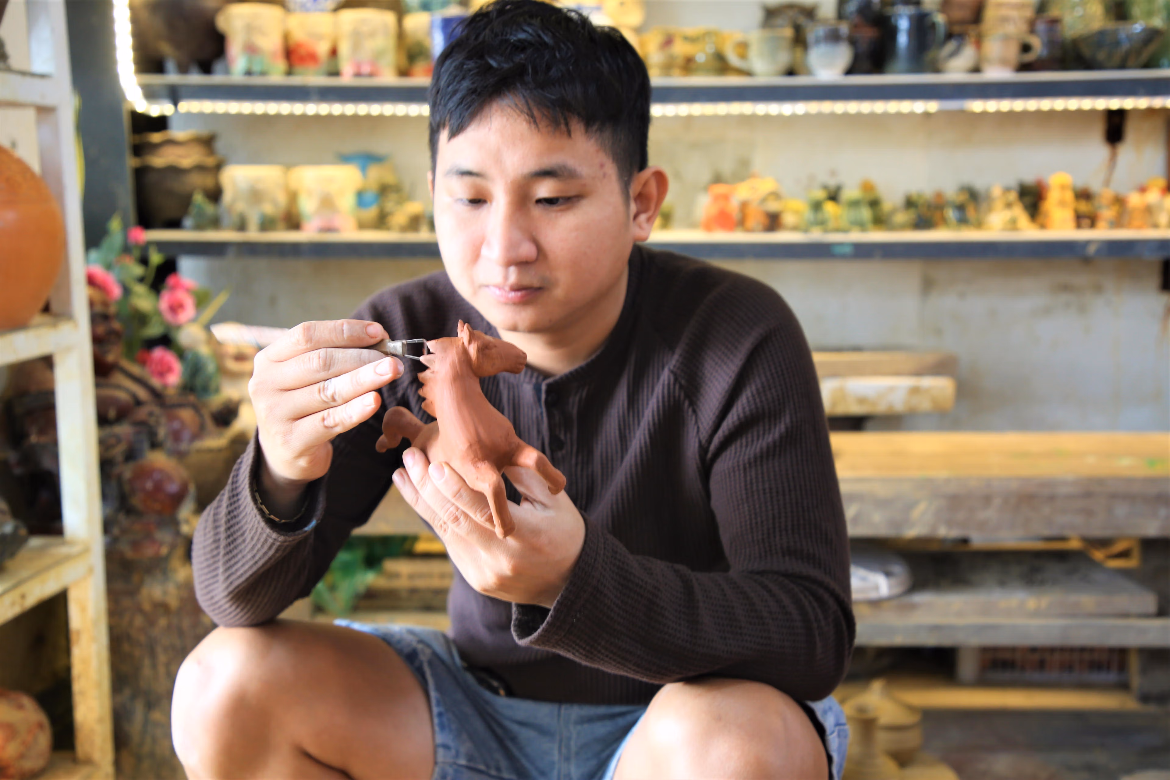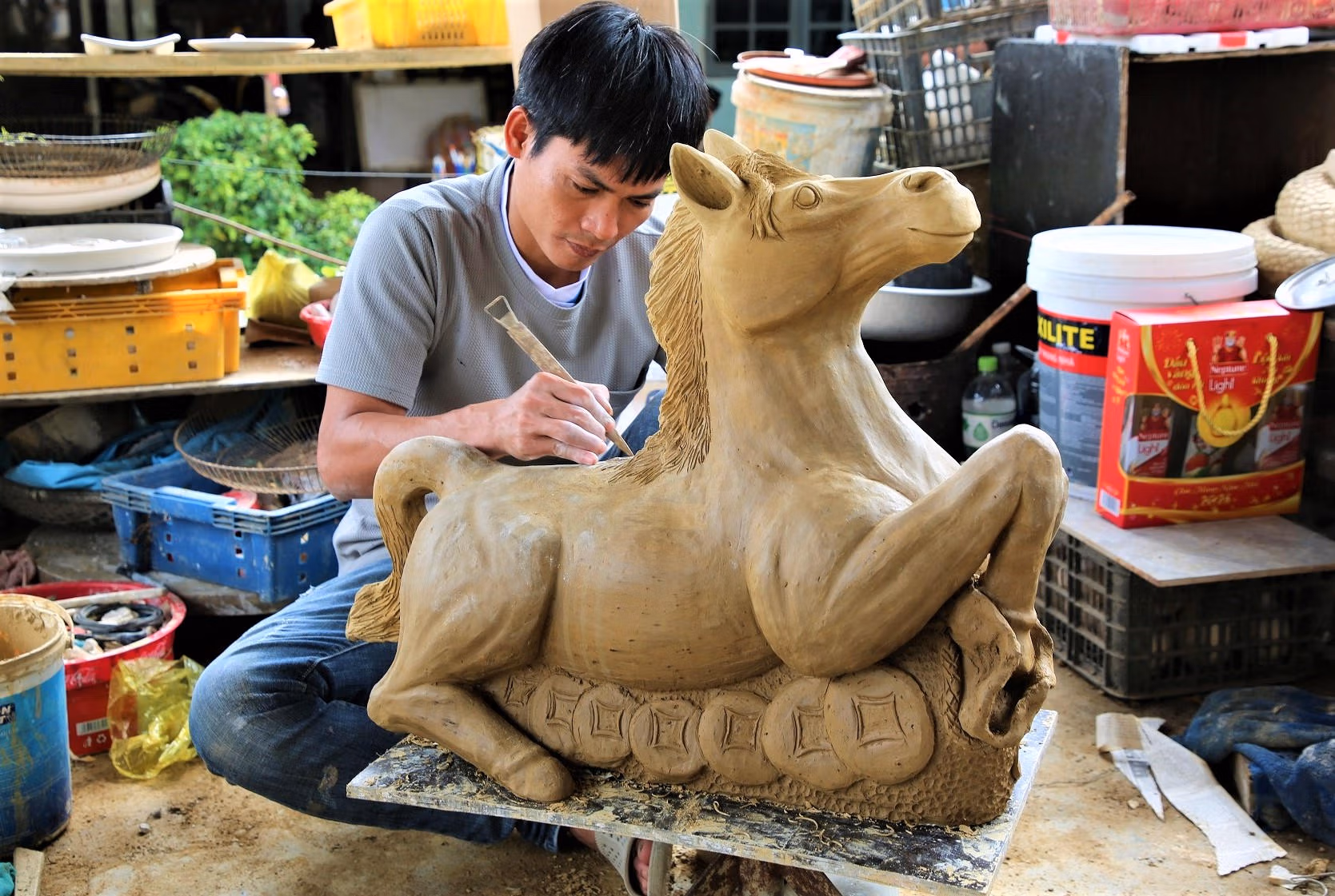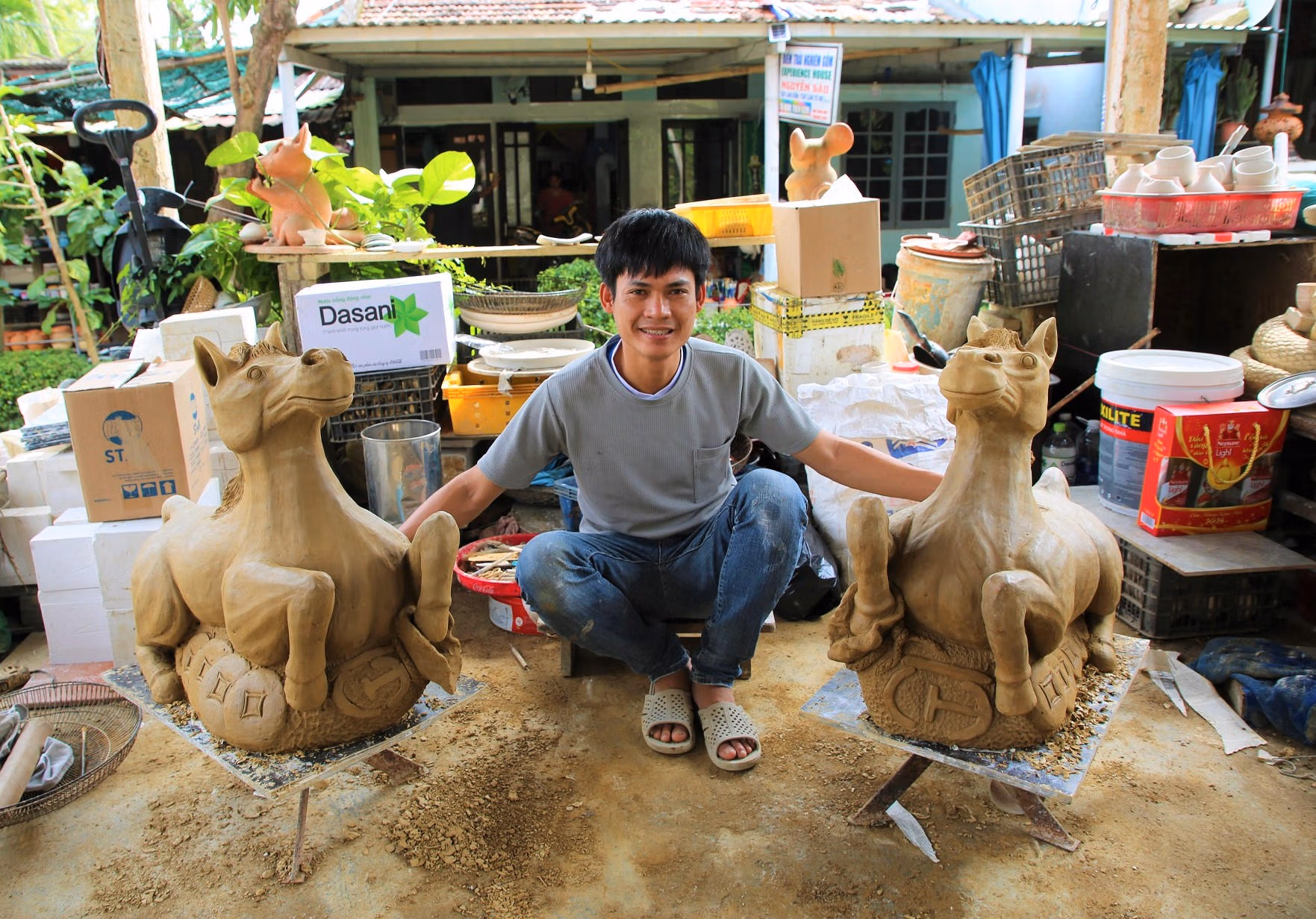 Anh Nguyễn Viết Lâm (30 tuổi), chủ cơ sở gốm Sơn Thúy ở làng gốm Thanh Hà, cho biết đang khẩn trương hoàn thiện đơn hàng 100 linh vật ngựa cho đối tác tại Hà Nội. Đây là mẫu đặt riêng, có độ khó cao, tạo hình ngựa trong tư thế “mã đáo thành công”, với hai chân sau trụ vững, hai chân trước chồm cao.