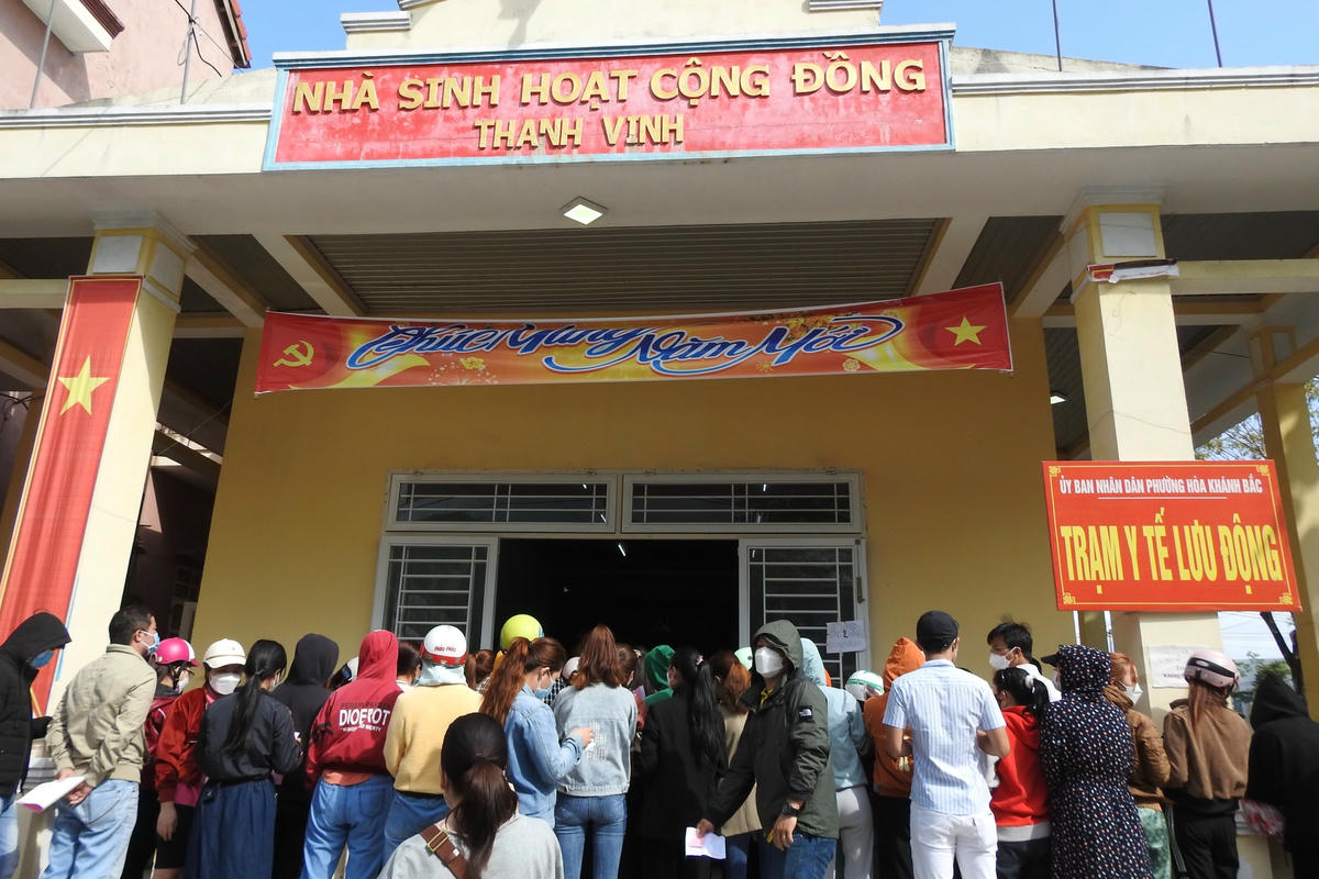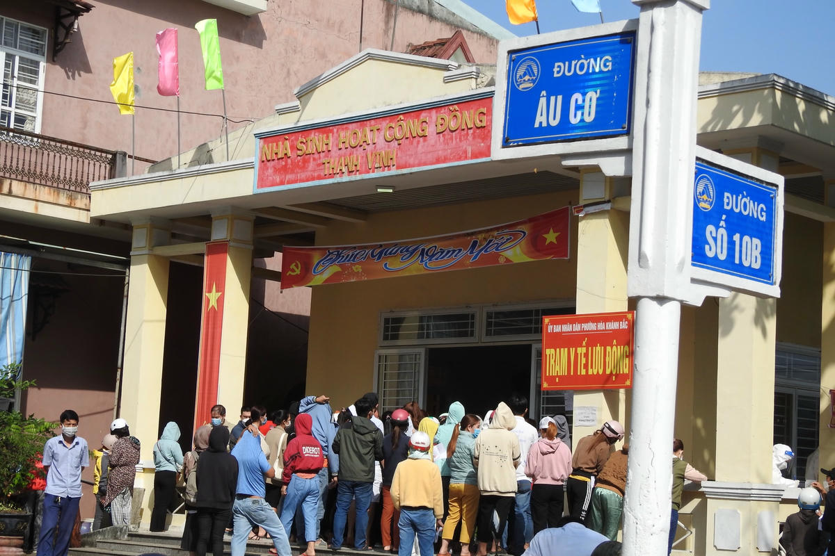 Sáng 8/3, tại Trạm y tế lưu động phường Hòa Khánh Bắc ở ngã ba đường Âu Cơ và đường 10 B (Khu công nghiệp Hòa Khánh) tiếp tục diễn ra tình trạng quá tải với hàng trăm người chen nhau, chờ đợi.