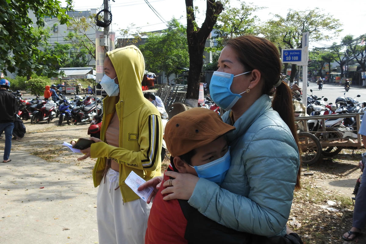 Nữ công nhân Trần Thị Mai (38 tuổi) làm việc tại một doanh nghiệp may trong Khu công nghiệp Hòa Khánh dẫn theo con trai 11 tuổi tên là Hoàng Đăng Vũ, nói rằng cả 2 mẹ con cùng mắc Covid-19, điều trị tại nhà, tự xét nghiệm thấy âm tính nên lên Trạm y tế lưu động xin chứng nhận hết F0 để đi làm.