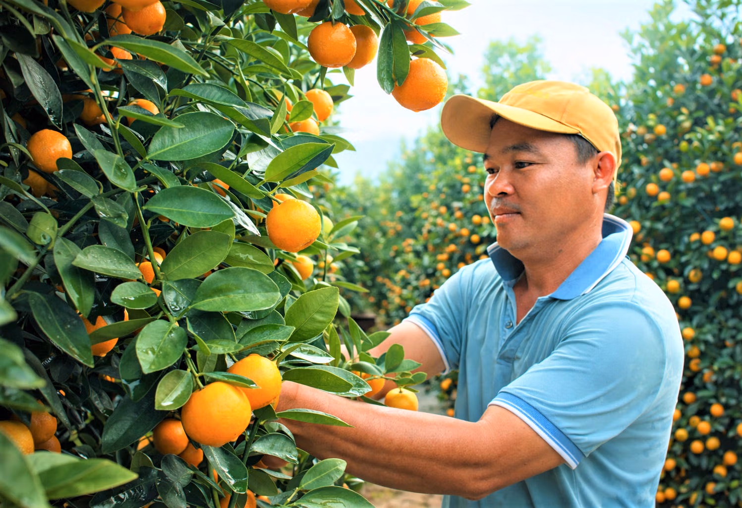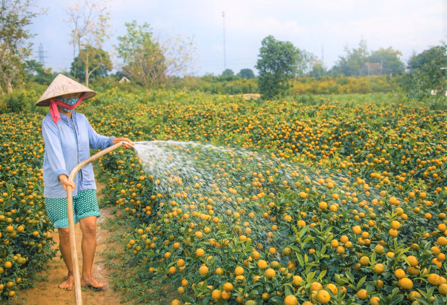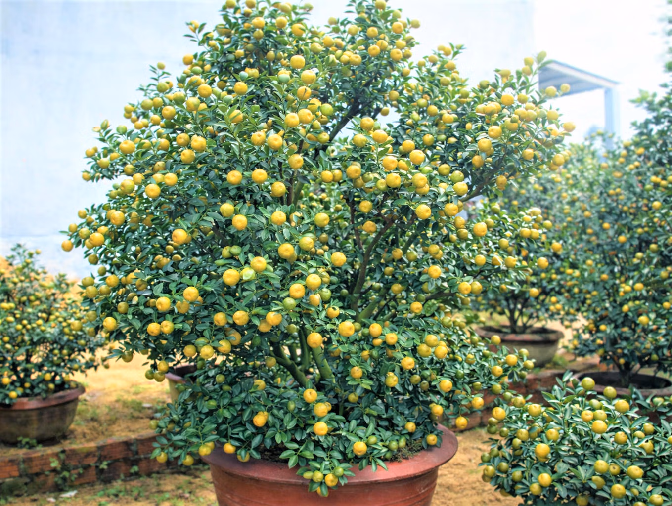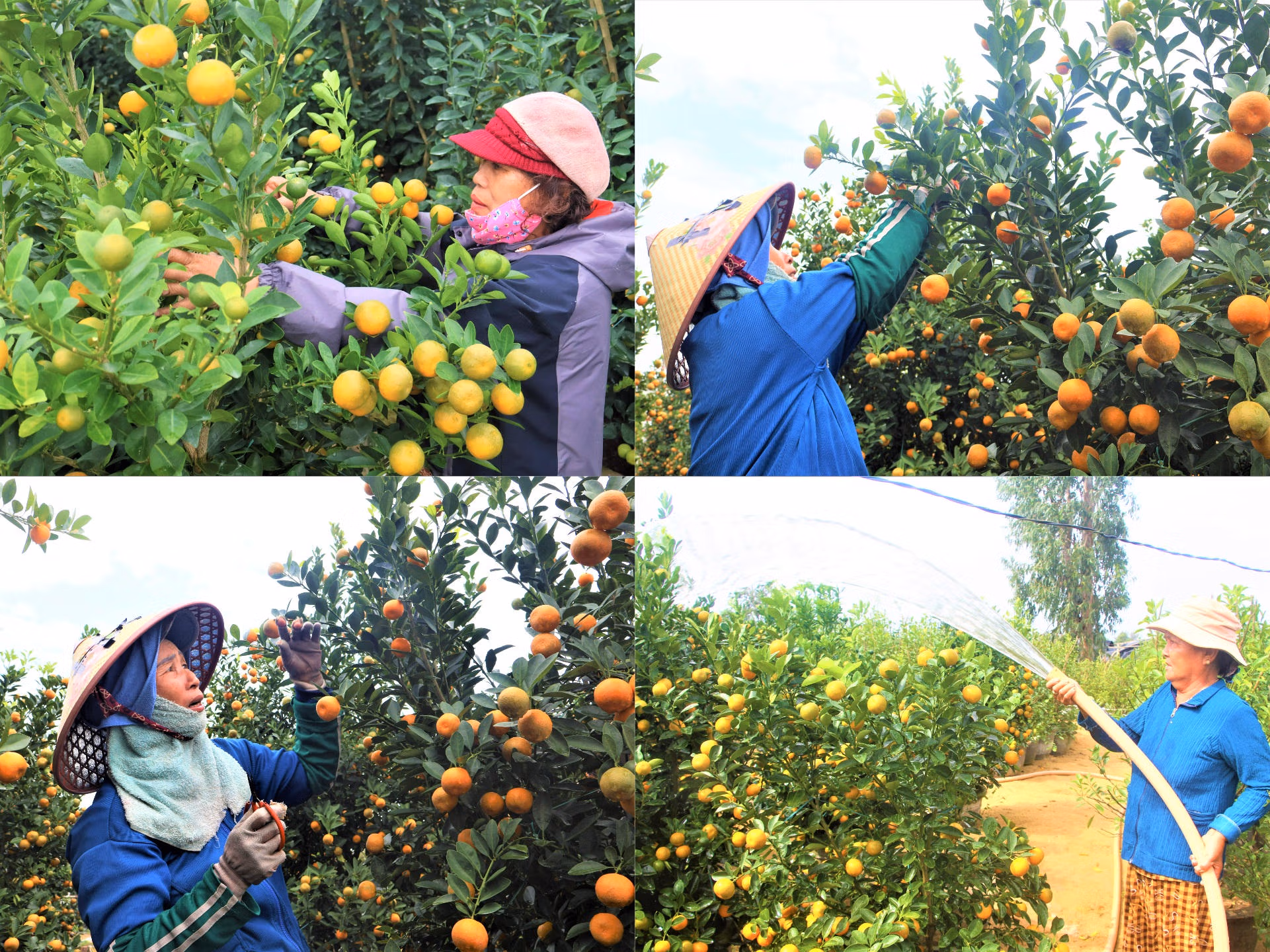 Mỗi công đoạn đều được thực hiện tỉ mỉ nhằm bảo đảm cây có dáng đẹp, tán tròn, quả to đều và sắc vàng tươi, đúng chuẩn quất chơi Tết.