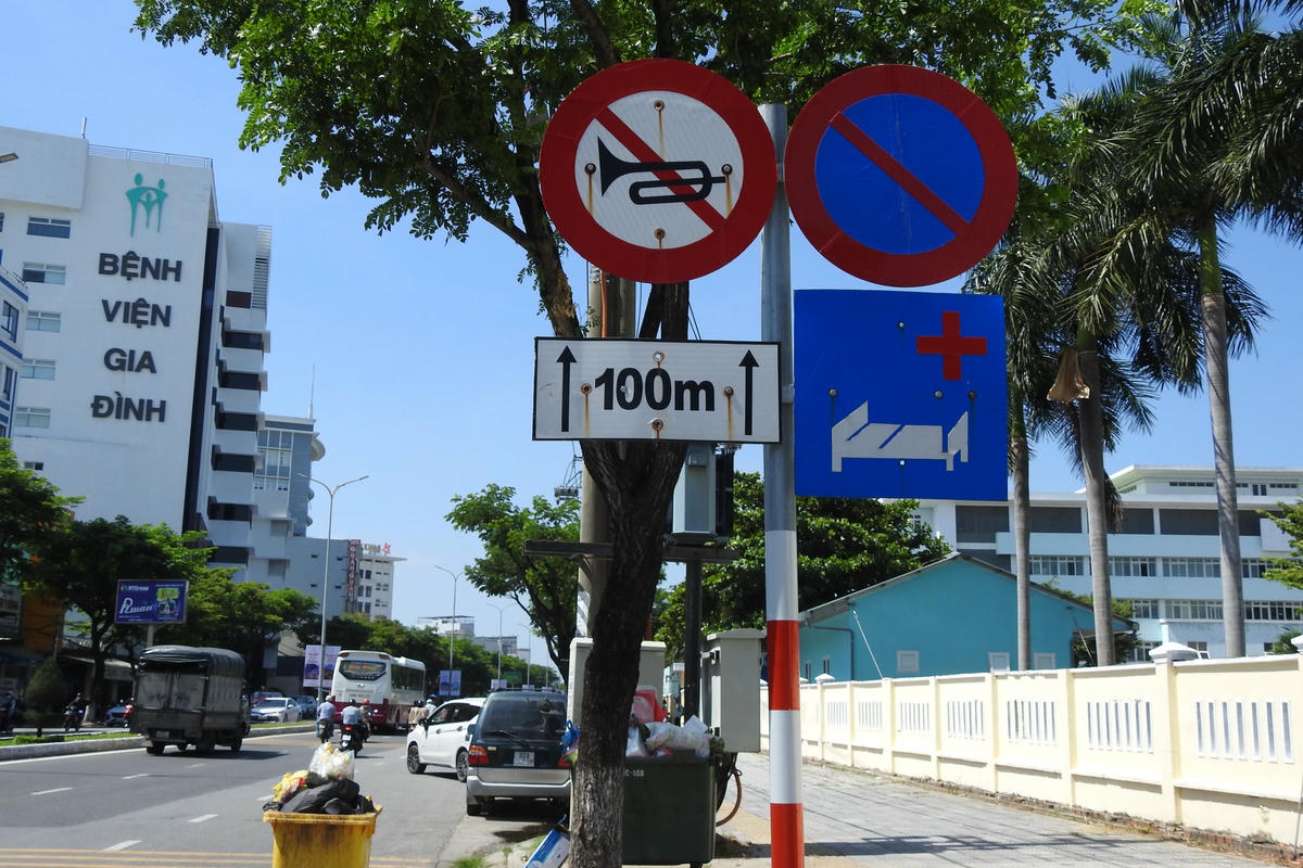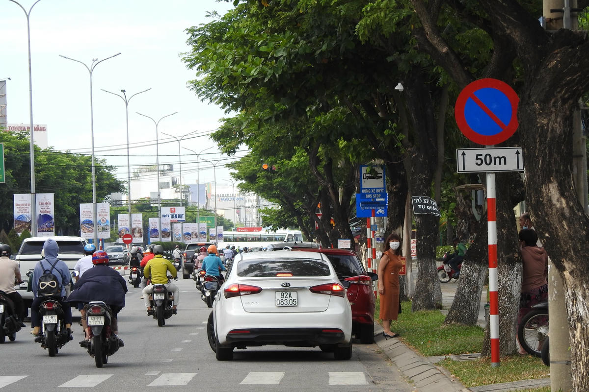 Ngay cả khi quan sát thấy biển báo cấm đỗ, nhiều lái xe vẫn chấp nhận đỗ sai quy định vì không thể tìm được bãi giữ xe quanh khu vực Bệnh viện Quân y 17, Đà Nẵng.