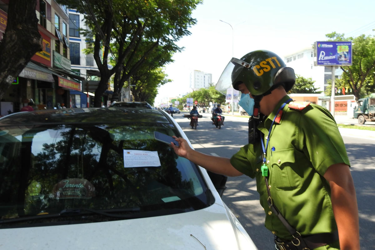 Dù CSGT - TT quận Hải Châu thường xuyên dán giấy ghi rõ lỗi "đỗ nơi có biển cấm" hẹn thời gian nộp phạt trên kính ô tô nhưng người điều khiển phương tiện vẫn vi phạm