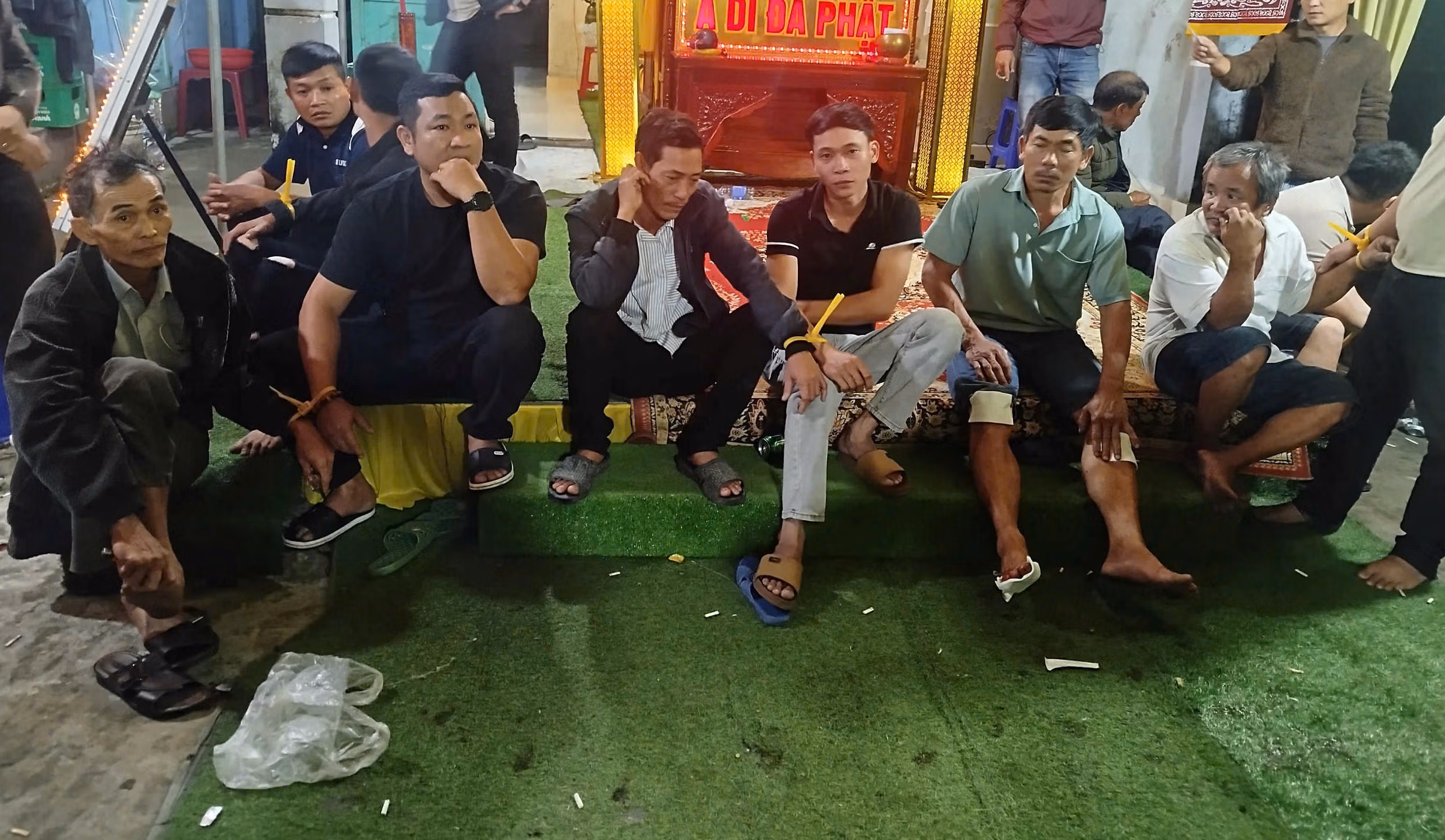 Tại thời điểm kiểm tra, lực lượng Công an phát hiện 15 đối tượng đang tụ tập đánh bạc, trong đó phần lớn cư trú tại tổ dân phố Tân Hạnh, phường Hòa Xuân, số còn lại trú tại phường Hòa Khánh và xã Điện Bàn Bắc, thuộc TP Đà Nẵng. Các đối tượng đã lợi dụng không gian đám tang để tổ chức sát phạt ăn thua bằng tiền.