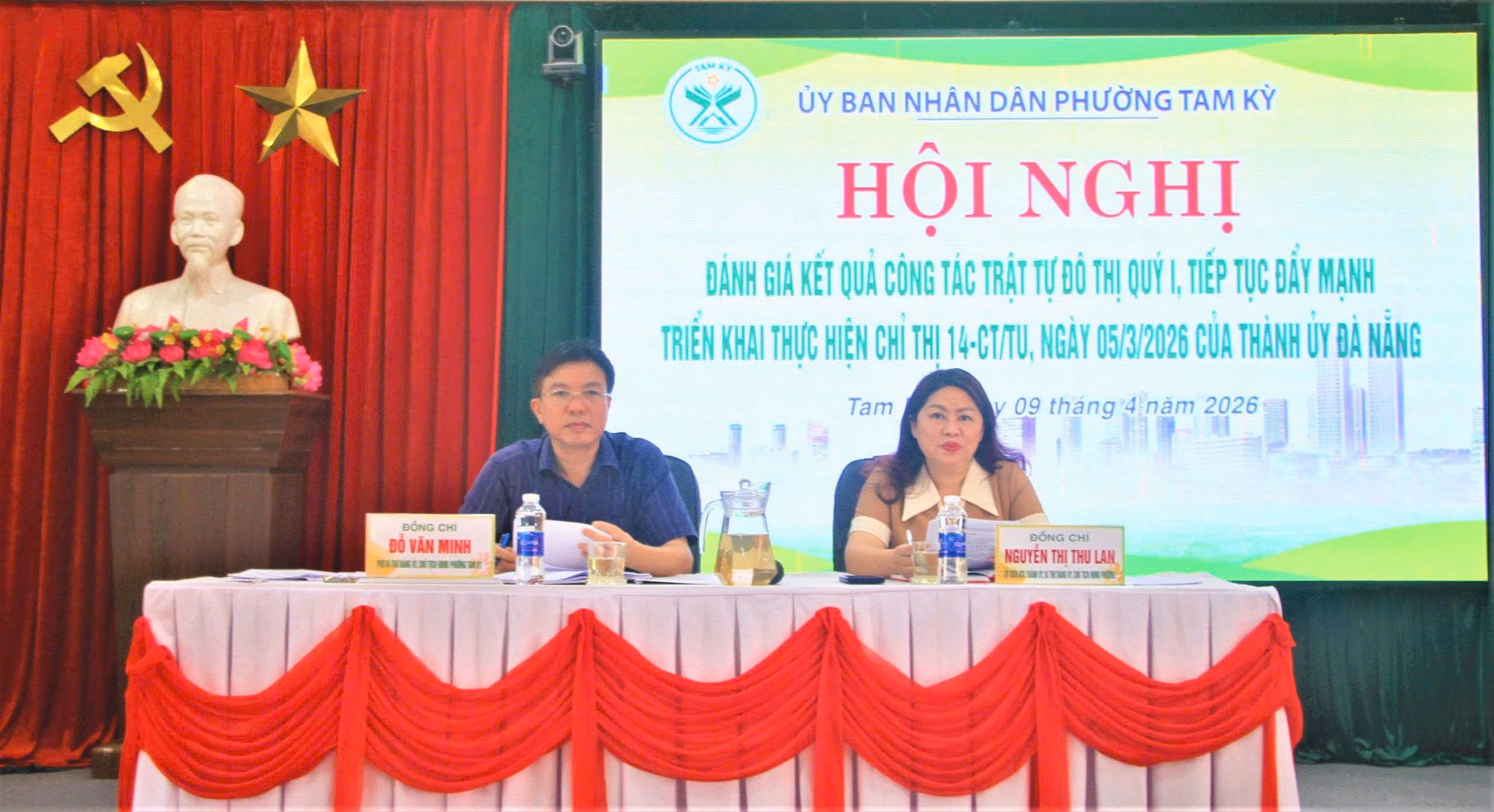 Bà Nguyễn Thị Thu Lan, Bí thư Đảng ủy phường Tam Kỳ và ông Đỗ Văn Minh, Chủ tịch UBND phường Tam Kỳ đồng chủ trì hội nghị. Tham dự có hơn 200 đại biểu đại diện các thôn, khối phố trên địa bàn.