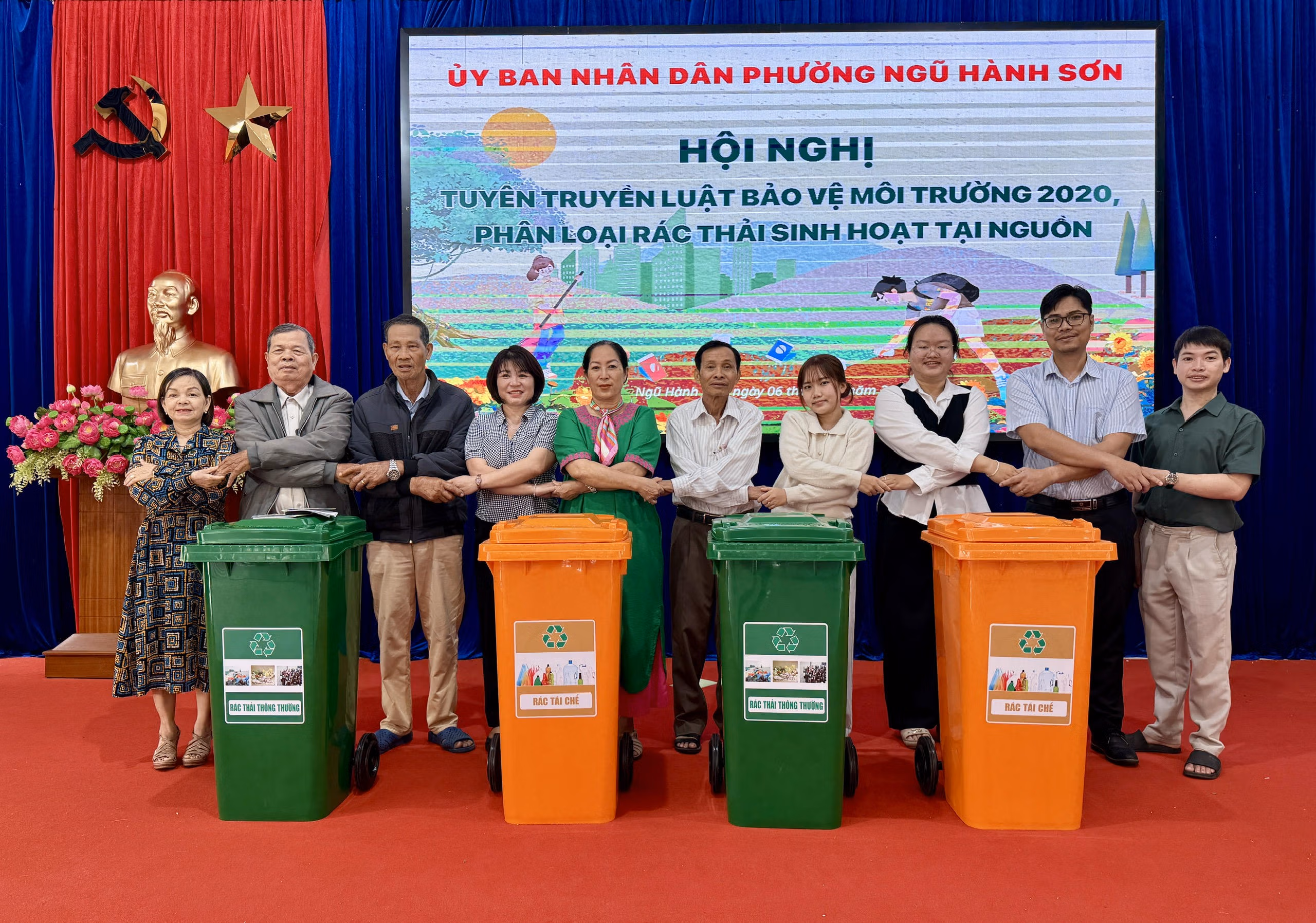 Các thùng rác trị giá gần 100 triệu đồng, đây là một trong các hoạt động trong chương trình hội nghị Tuyên truyền Luật Bảo vệ môi trường, hướng dẫn phân loại rác tại nguồn, được tổ chức tại phường Ngũ Hành Sơn cùng ngày.