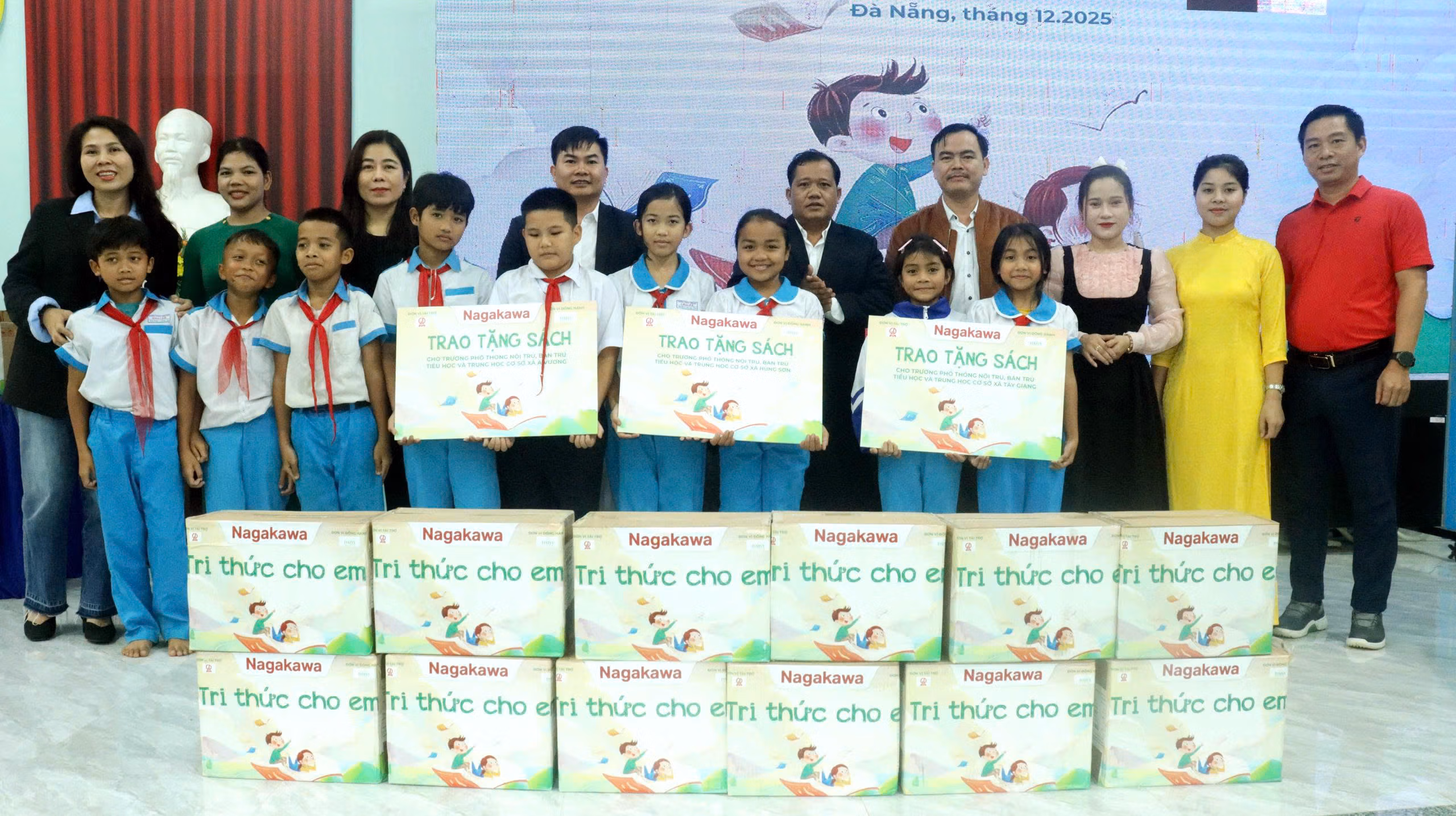 Ngày 18/12, Ban quản lý dự án đầu tư xây dựng các công trình dân dụng, công nghiệp và hạ tầng kỹ thuật Đà Nẵng phối hợp Tập đoàn Nagakawa, Nhà xuất bản Giáo dục tổ chức chương trình tặng sách cho trẻ em 3 trường miền núi.