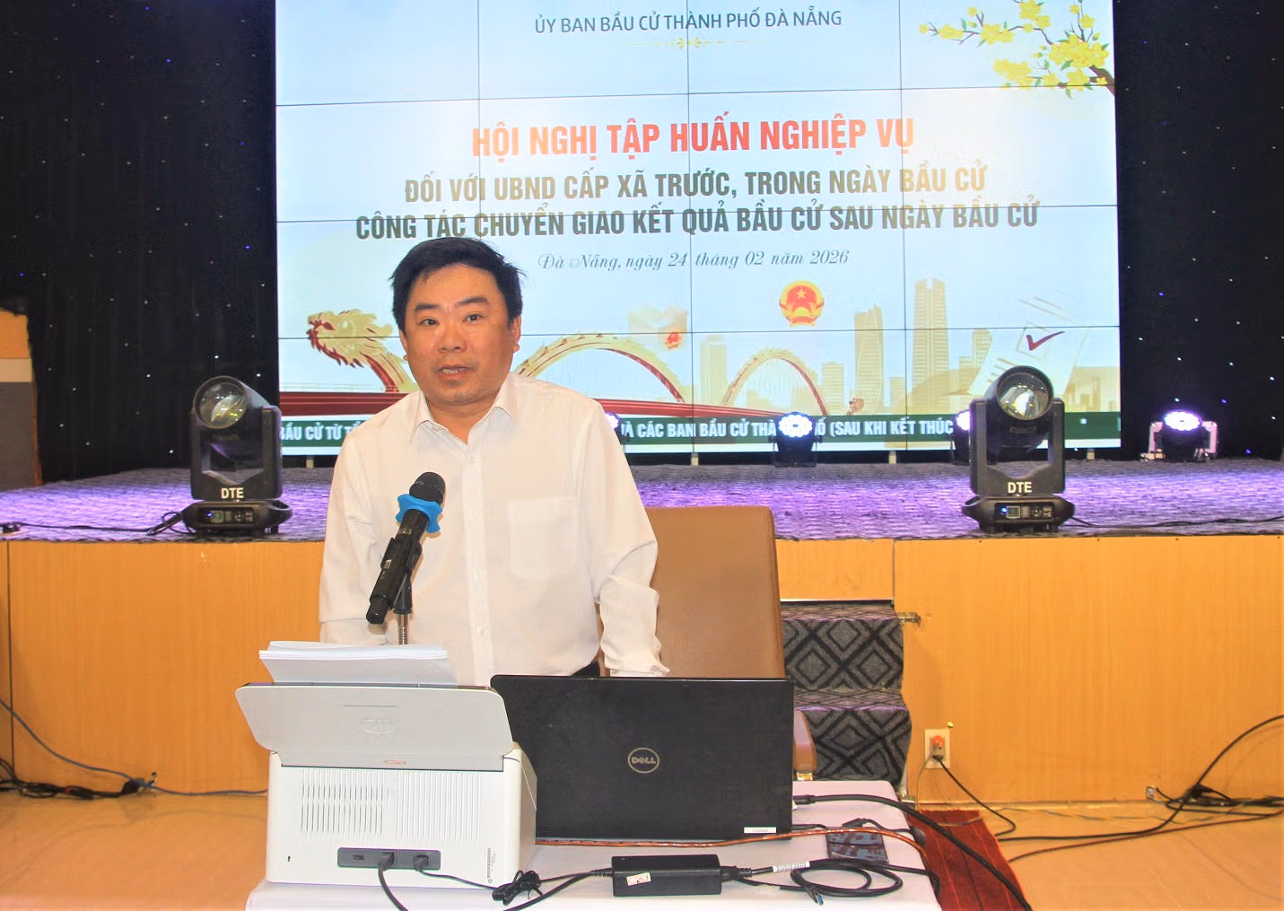 Ngày 24/2, tại phường Tam Kỳ, TP Đà Nẵng, Sở Nội vụ TP Đà Nẵng, Cơ quan Thường trực Ủy ban bầu cử (UBBC) thành phố tổ chức hội nghị tập huấn nghiệp vụ bầu cử cho UBND cấp xã, chuẩn bị cho cuộc bầu cử đại biểu Quốc hội khóa XVI và đại biểu HĐND các cấp nhiệm kỳ 2026- 2031. Phó Giám đốc Sở Nội vụ TP Đà Nẵng Trần Trung Sơn chủ trì buổi hội nghị.