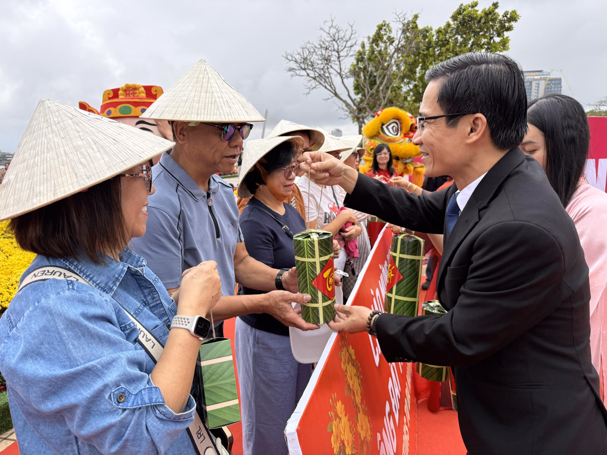 Tại đây có chuỗi hoạt động trải nghiệm tết dành cho du khách như múa lân, tặng quà lưu niệm, lì xì may mắn đầu xuân, tham gia hoạt động hái lộc đầu năm và check-in tại không gian đường hoa rực rỡ sắc màu giữa lòng thành phố.
