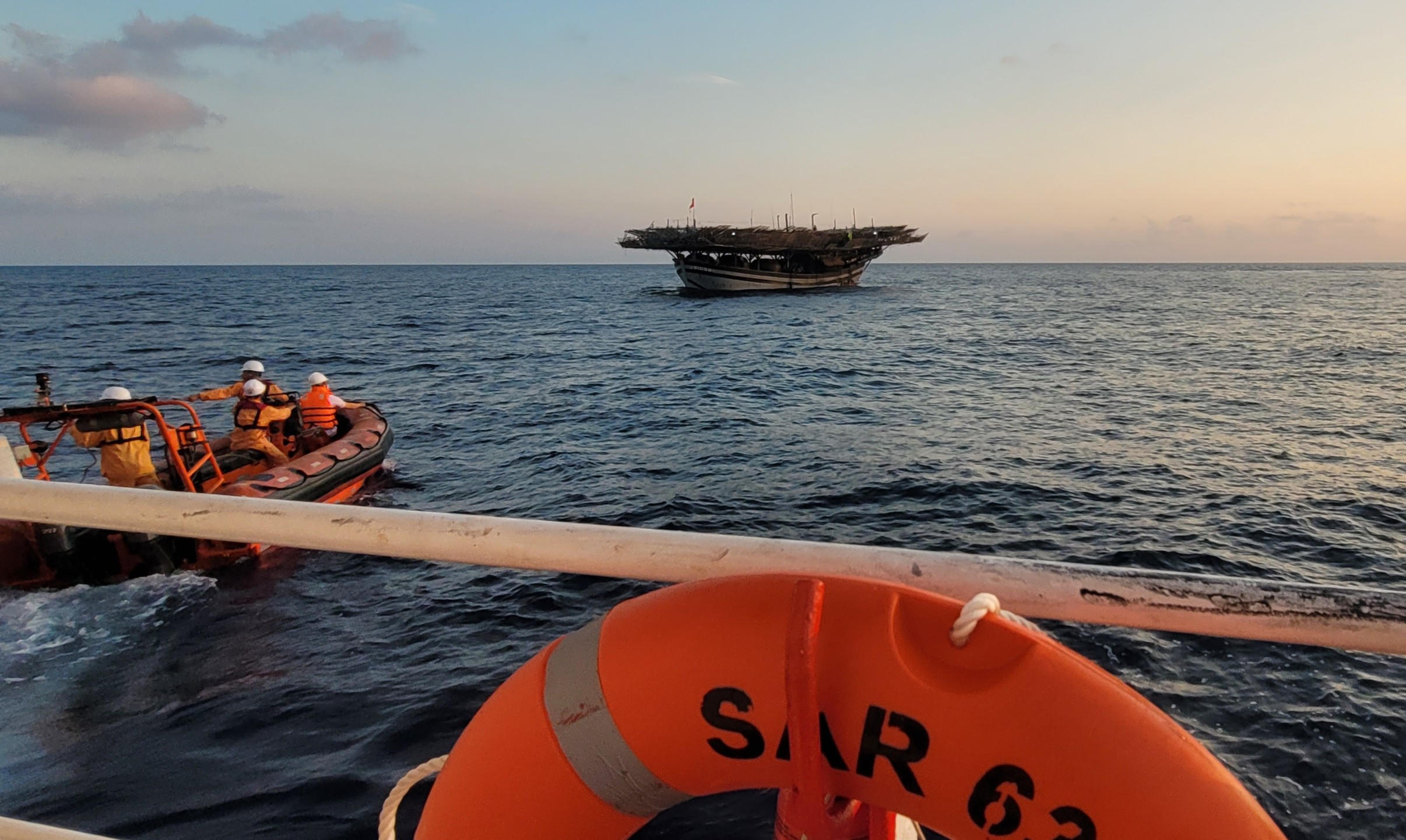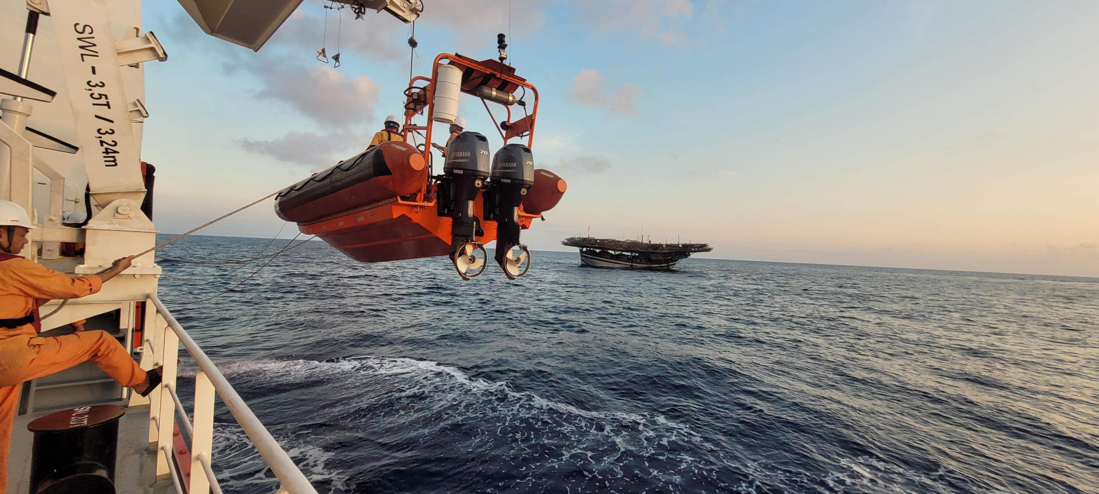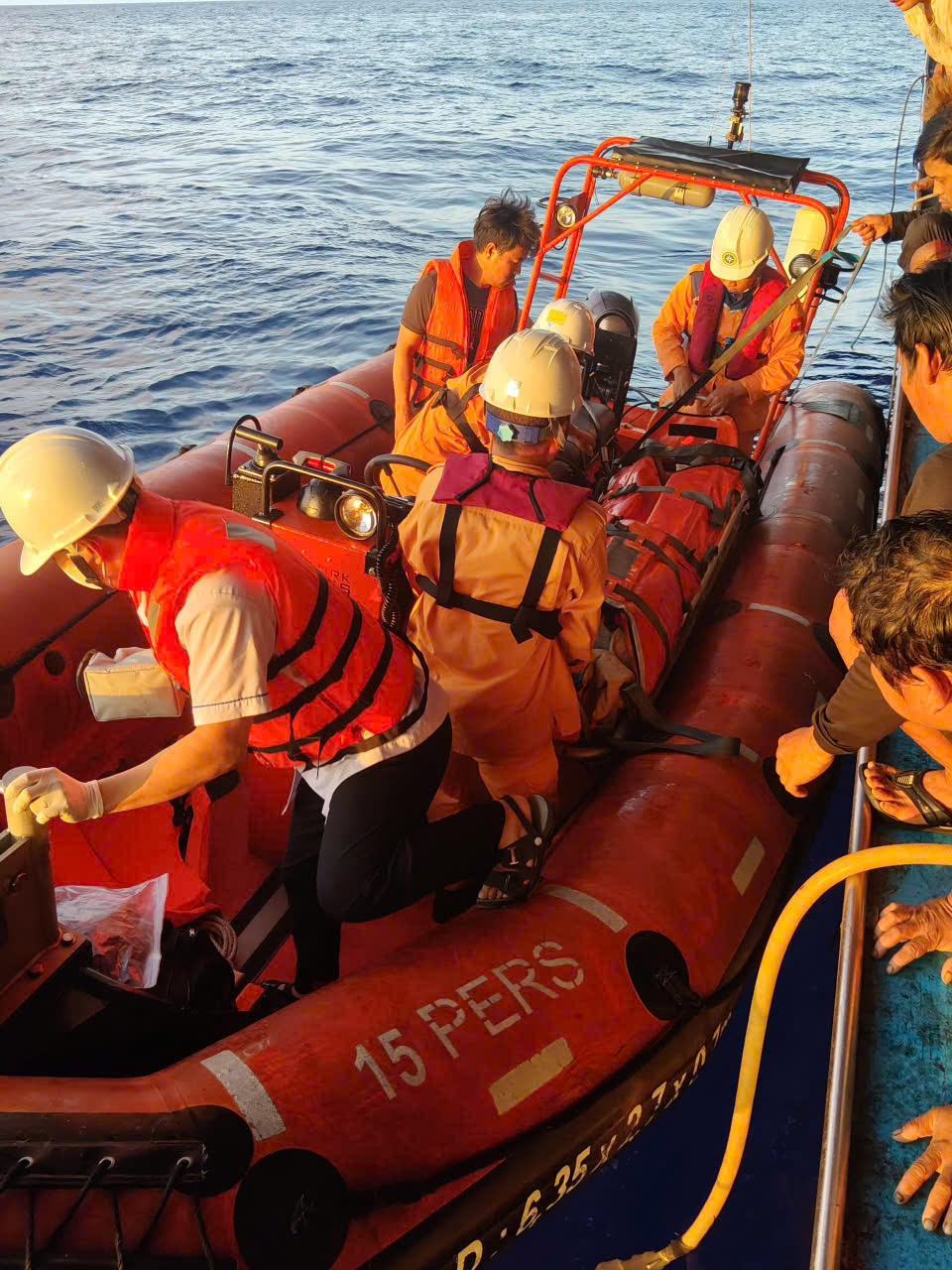 Tàu triển khai ê kíp nhân viên cứu nạn cùng y bác sĩ lên tàu QNa 91056 để cấp cứu tại chỗ nhằm ổn định tình trạng và sau đó chuyển bệnh nhân về tàu SAR 631 chăm sóc y tế tích cực.