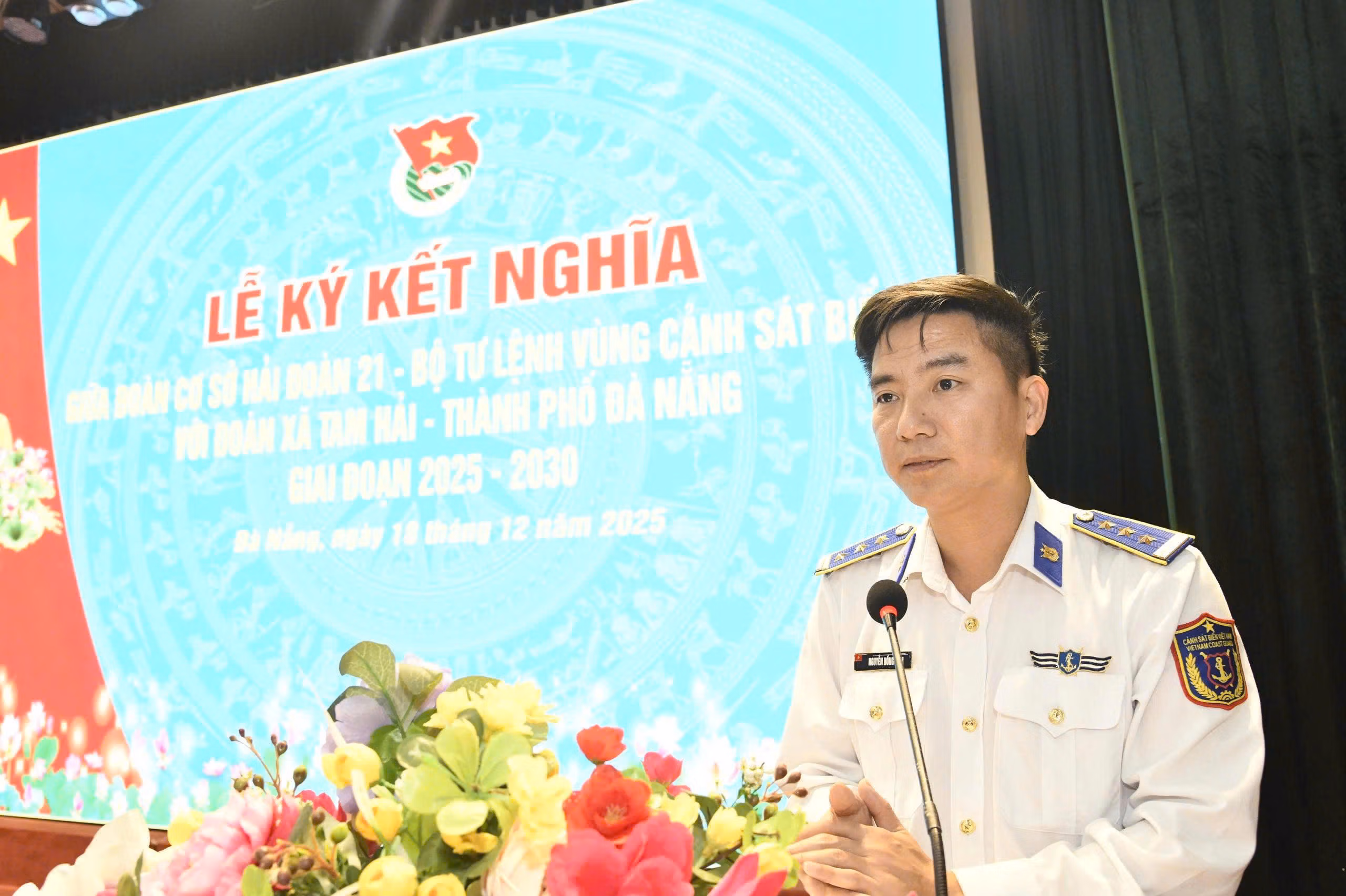 Phát biểu tại buổi lễ, Thượng tá Nguyễn Hồng Nam, Phó Chính ủy Hải đoàn 21 nhấn mạnh, việc ký kết nghĩa giữa Đoàn cơ sở Hải đoàn 21 và Đoàn xã Tam Hải có ý nghĩa chính trị, xã hội sâu sắc, góp phần cụ thể hóa phong trào “Thanh niên Cảnh sát biển rèn đức, luyện tài, xung kích, sáng tạo, xứng danh Bộ đội Cụ Hồ thời kỳ mới”, đồng thời tăng cường mối quan hệ đoàn kết, gắn bó giữa lực lượng vũ trang với cấp ủy, chính quyền và nhân dân địa phương.