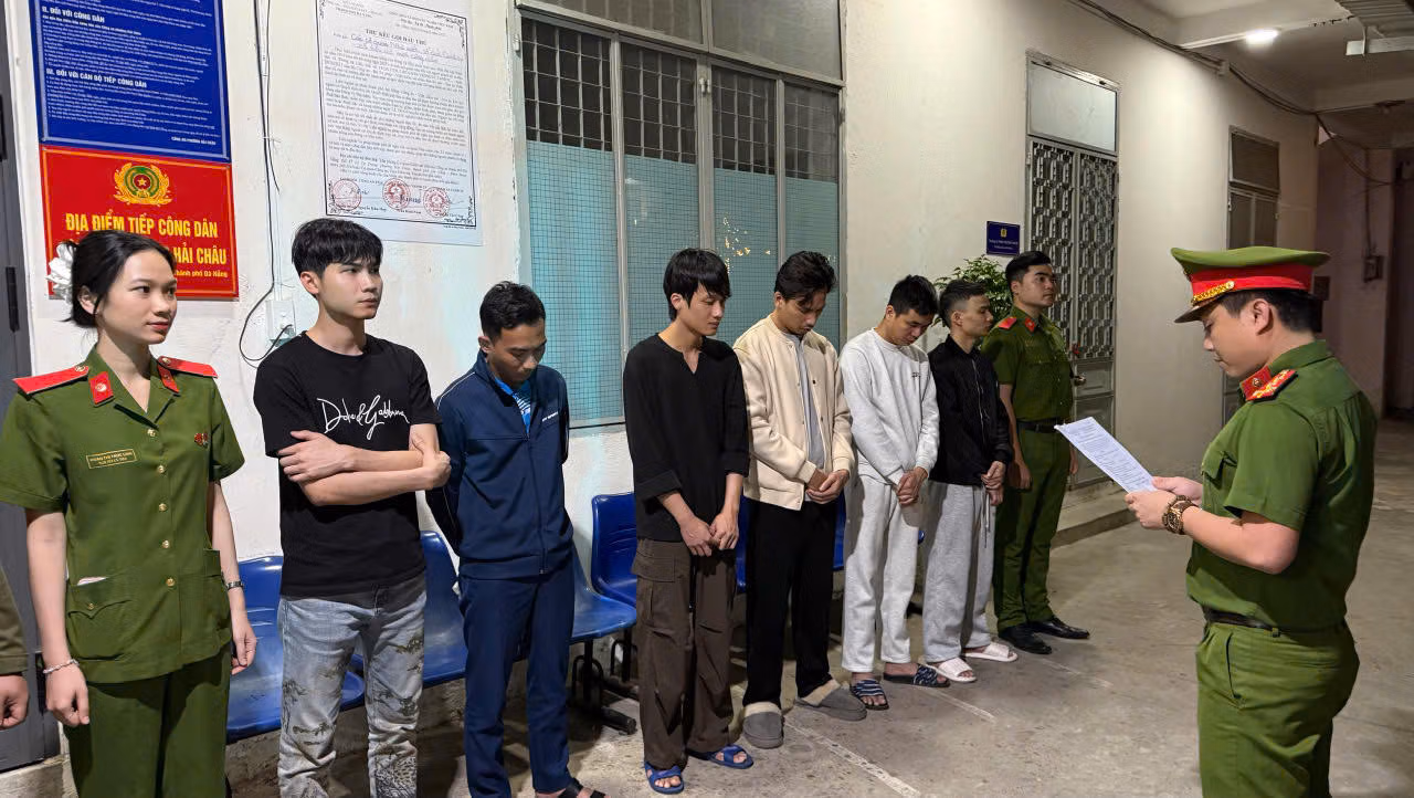 Theo Công an TP Đà Nẵng, 7 đối tượng bị bắt giữ gồm: Nguyễn Văn Chung (32 tuổi); Nguyễn Đức Long (26 tuổi); Ong Khắc Minh (26 tuổi); Tạ Văn Bá (37 tuổi); Cao Bá Nam Việt (35 tuổi); Vũ Trí Huy (31 tuổi); Nguyễn Anh Đô (27 tuổi), tất cả cùng ở tỉnh Bắc Ninh.