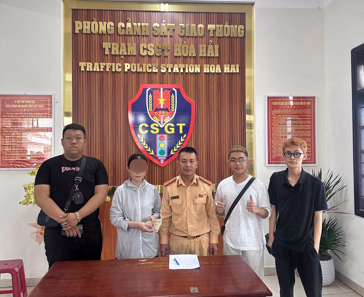 Phòng CSGT, Công an TP Đà Nẵng ghi nhận, biểu dương tinh thần trung thực, trách nhiệm của anh Huỳnh Nguyễn Trung Quốc cùng các bạn, góp phần lan tỏa giá trị nhân văn, xây dựng hình ảnh thanh niên sống đẹp, sống có ích cho cộng đồng.
