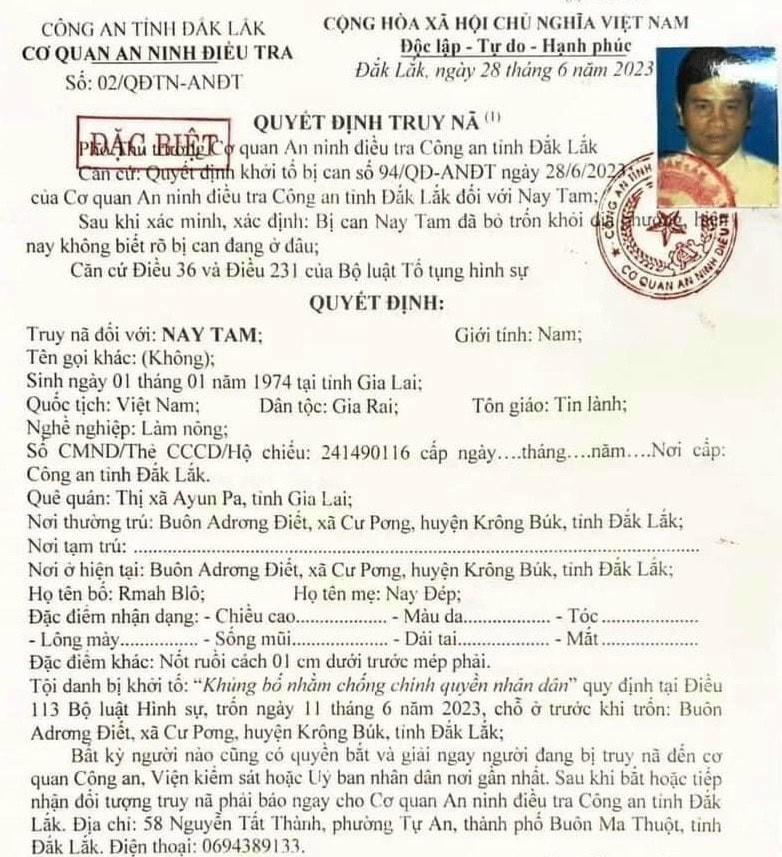 Trong các bị can này có, Nay Yên, Nay Dương và Nay Tam là 3 anh em ruột. Cơ quan công an cũng cung cấp đặc điểm nhận dạng của 6 bị can đang bị truy nã do liên quan đến vụ khủng bố tại Đắk Lắk.